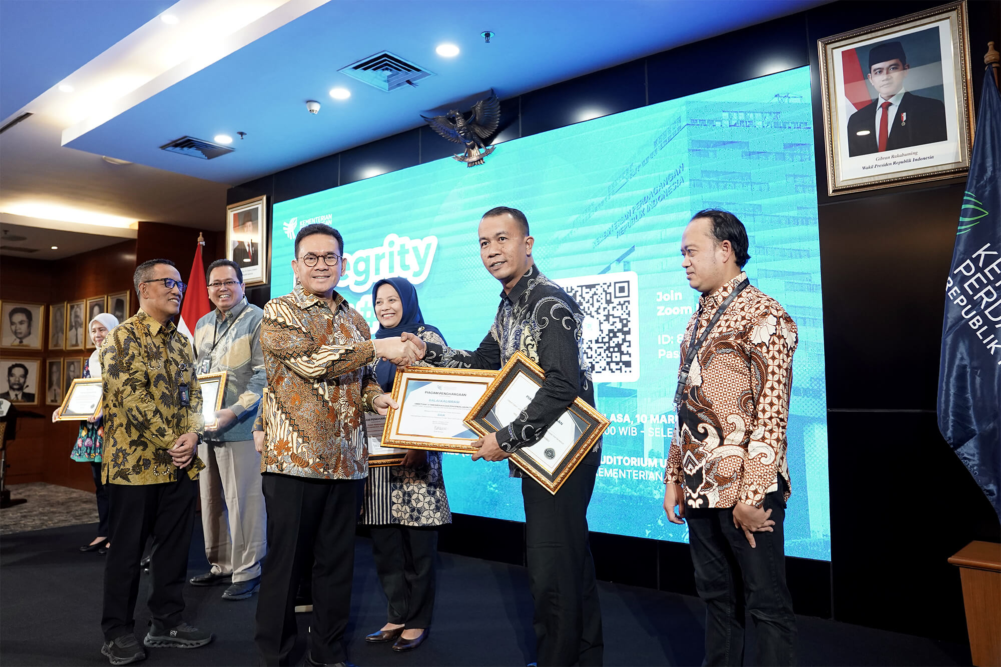 Mendag menyerahkan penghargaan kepada unit kerja peraih Predikat Menuju Wilayah Bebas dari Korupsi (WBK) dan unit kerja dengan Predikat Kualitas Pelayanan Baik dari Ombudsman RI.
