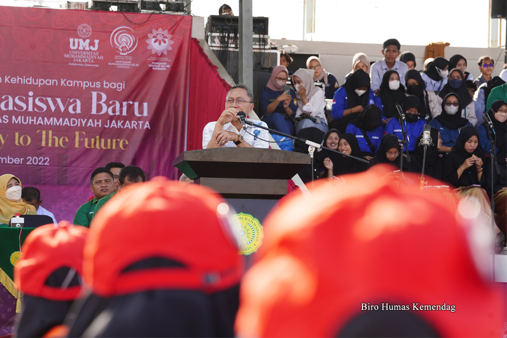 Menteri Perdagangan, Zulkifli Hasan menghadiri Pengenalan Kehidupan Kampus Bagi Mahasiswa Baru (PKKMB) Universitas Muhammadiyah Jakarta 2022 di Kota Tangerang Selatan, Banten, Senin (12 Sep).