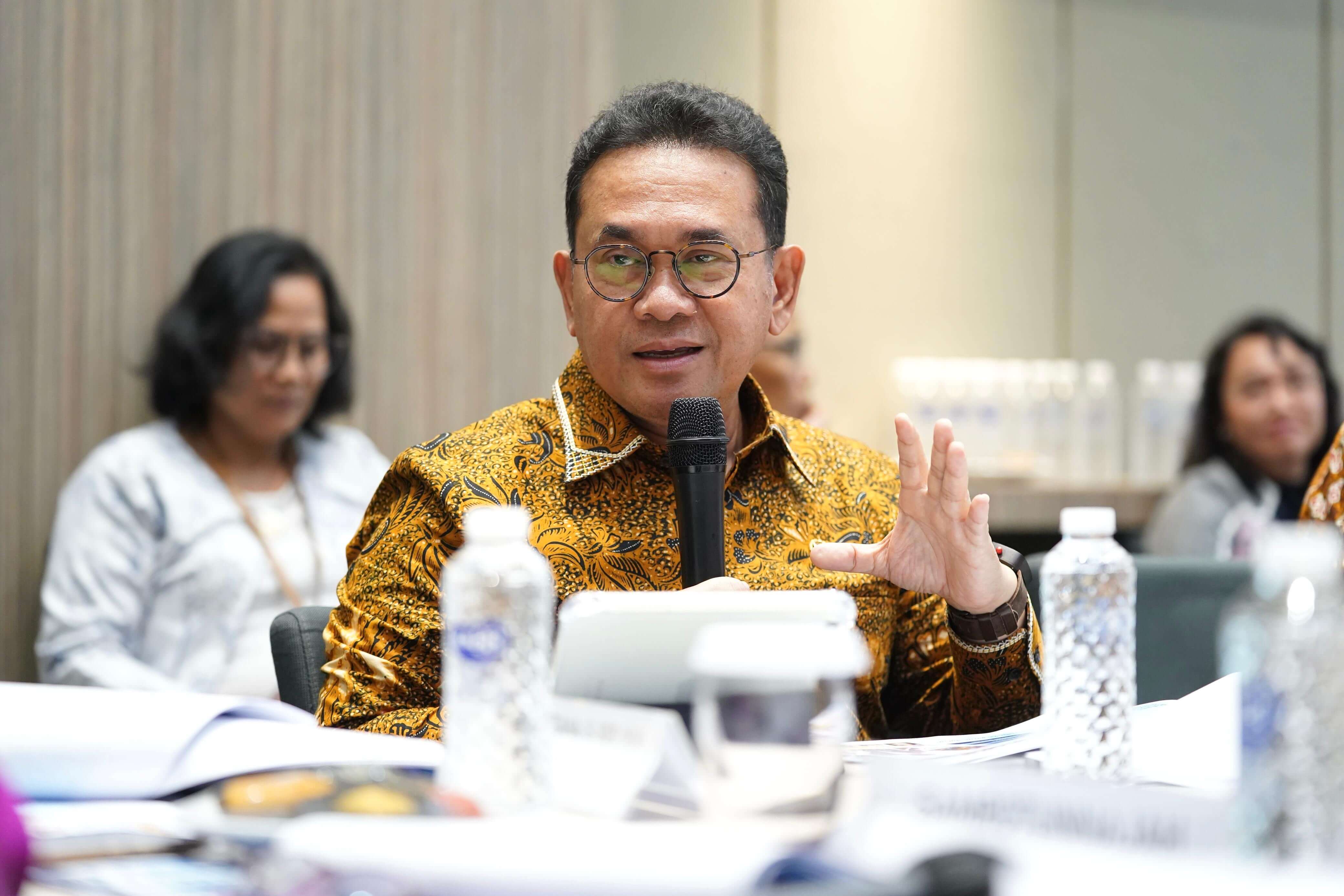 Menteri Perdagangan, Budi Santoso melakukan presentasi uji monitoring dan evaluasi keterbukaan informasi publik 2025 yang diselenggarakan oleh Komisi Informasi Pusat (KIP) di Jakarta, Rabu (19 Nov).