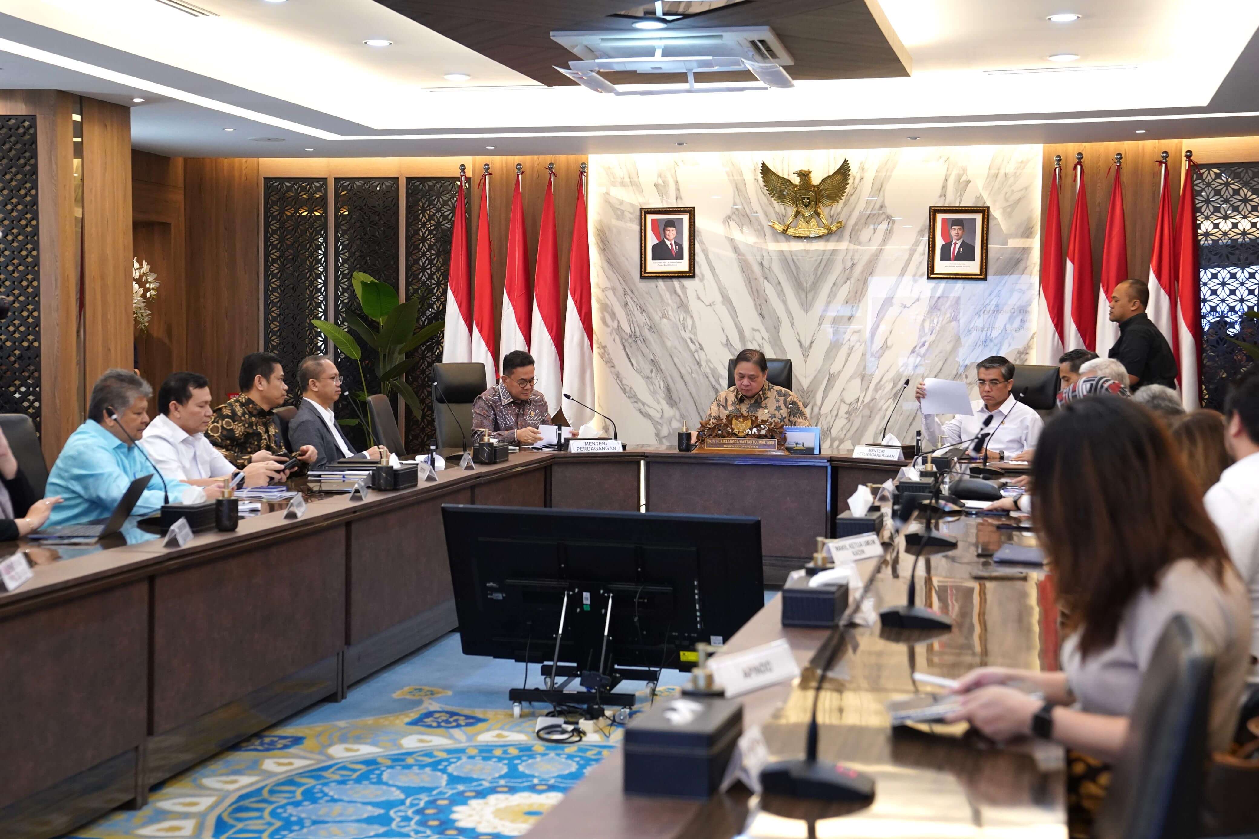 Dalam pertemuan ini, juga ditekankan pentingnya koordinasi lintas kementerian/lembaga dalam menyusun langkah respons yang terintegrasi, termasuk penguatan data dan informasi serta sinergi kebijakan perdagangan internasional.