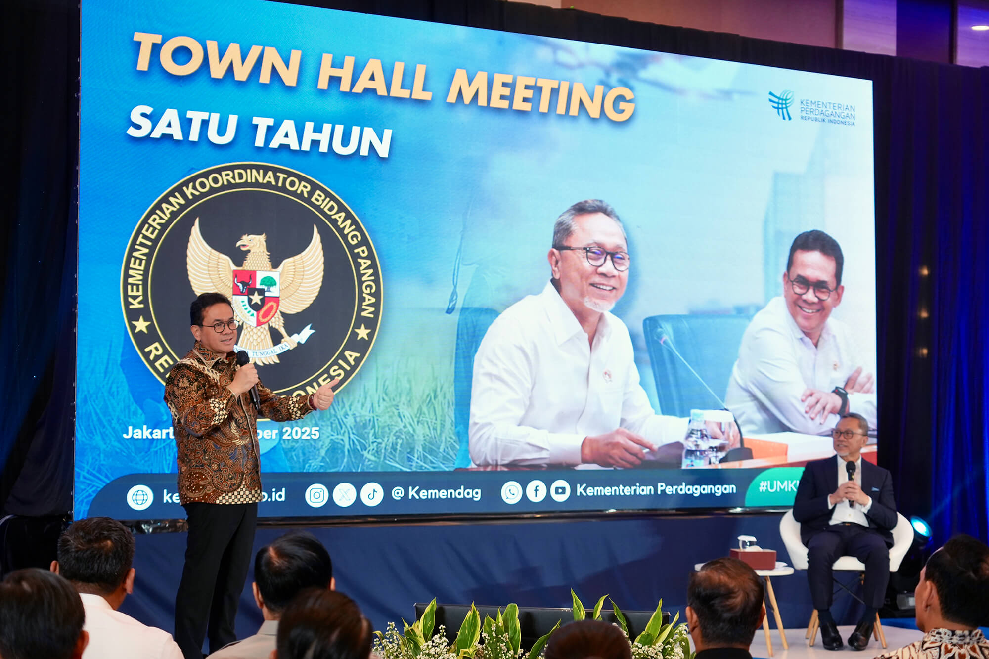 Menteri Perdagangan, Budi Santoso menghadiri Townhall Meeting Capaian Kinerja 1 Tahun Kemenko Pangan di Kantor Kementerian Koordinator Bidang Pangan, Selasa (21 Okt). Acara tersebut dipimpin oleh Menteri Koordinator Bidang Pangan, Zulkifli Hasan.