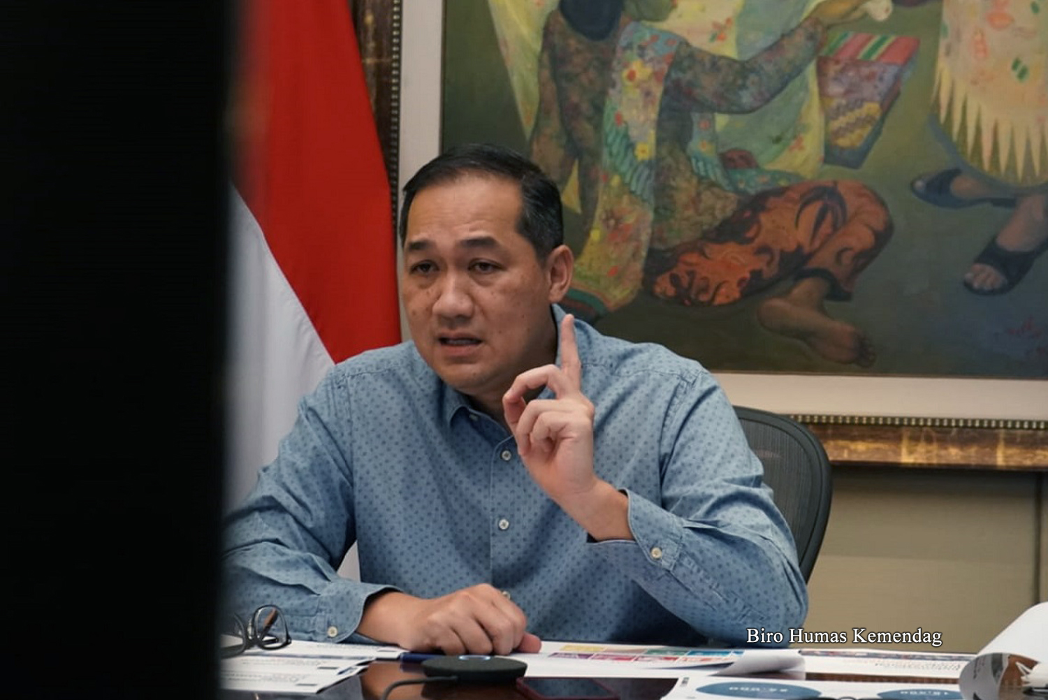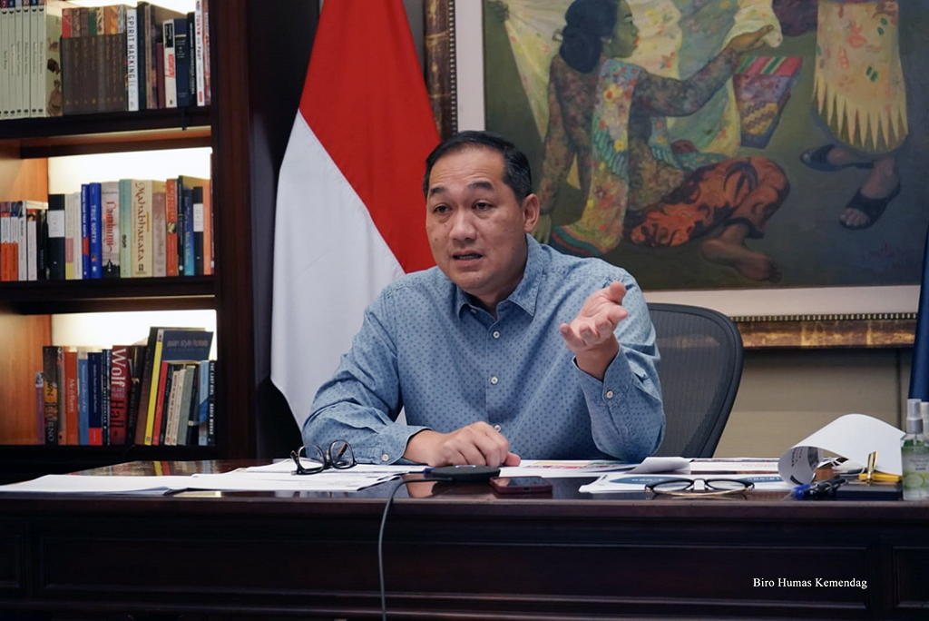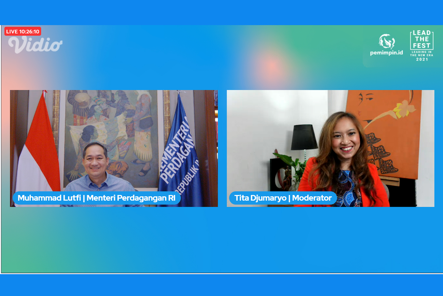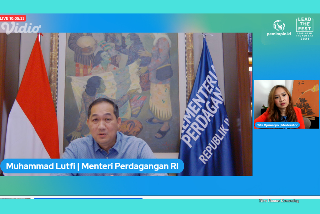 Menteri Perdagangan, Muhammad Lutfi menjadi pembicara pada Webinar Series 12 - Leaders Through Crisis "Cross-Sectors Collaboration for The Better Future of Indonesia" yang diselenggarakan oleh Pemimpin Indonesia di Jakarta, Minggu (15 Agustus).