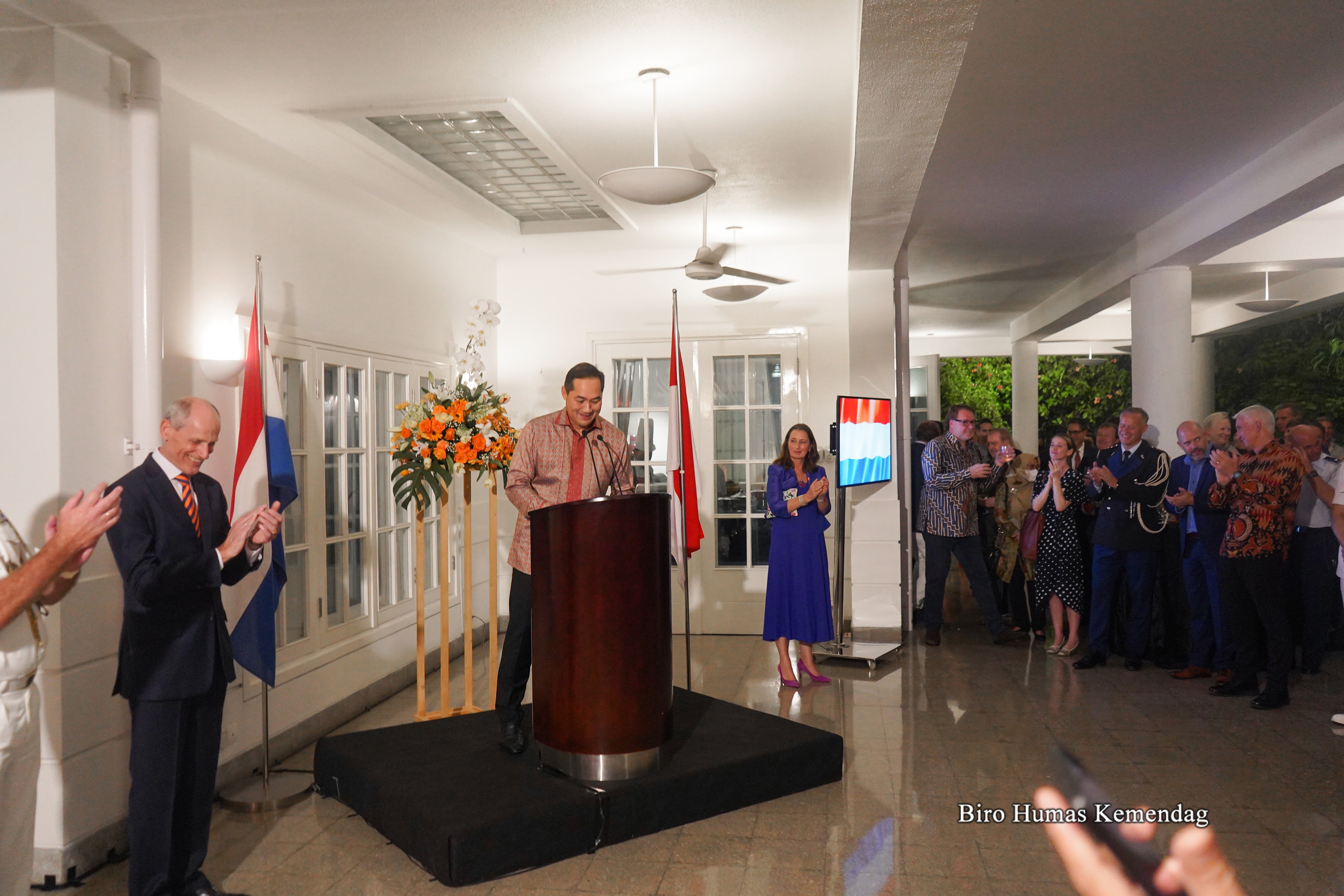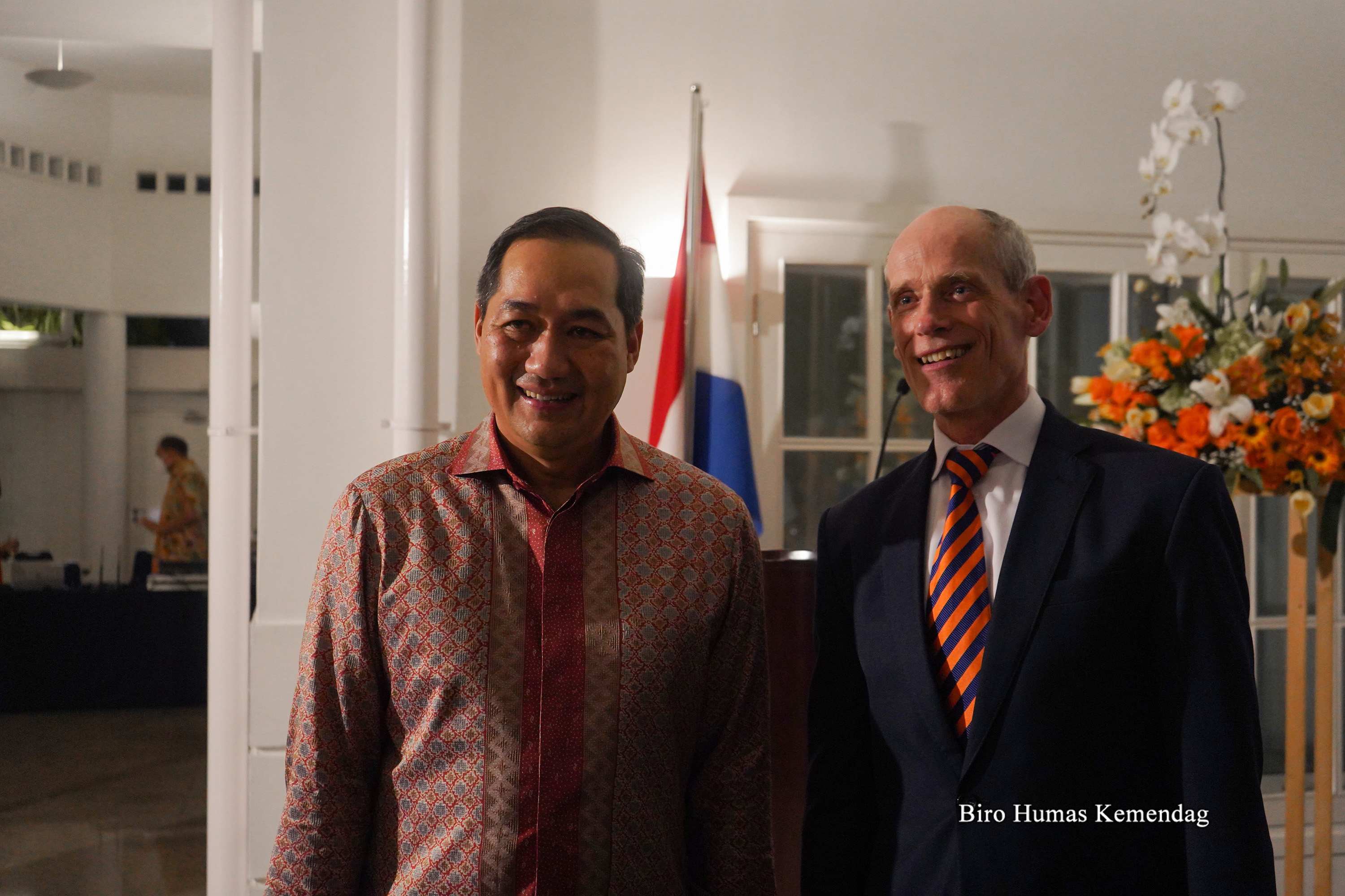 Menteri Perdagangan RI, Muhammad Lutfi menghadiri perayaan Hari Nasional Belanda "The King's Day", Jakarta, Rabu (27 Apr). Dalam acara tersebut, Mendag bertemu Duta Besar Belanda Jakarta, Lambert Grijns.