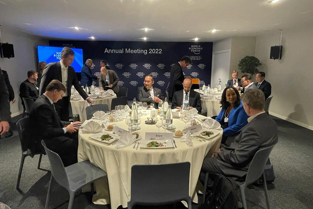 Hadir dalam sesi tersebut Presiden WEF, Borge Brende; Direktur Jenderal WTO, Ngozi Okonjo- Iweala; Chief Executive Officer of DSV, Jens Bjorn Andersen; Chairman of Siemens, Jim Hagemann Snabe; Global CEO JBS, Gilberto Tomazoni; Executive Vice-President of the European Commission, Valdis Dombrovskis; serta Group Chairman of Standard Chartered Bank, Jose Vinals.