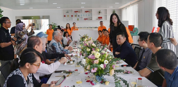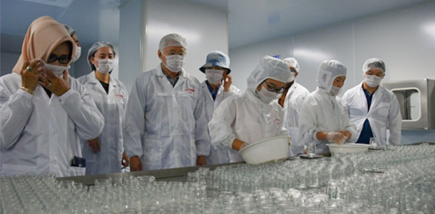 Menteri Perdagangan RI, Enggartiasto Lukita melakukan kunjungan ke industri pengolahan sarang burung walet Zhongyan di Shanghai, China, Minggu (21/7).