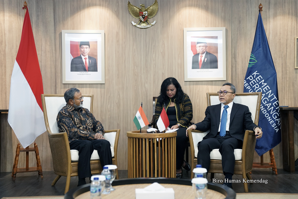 Menteri Perdagangan RI, Zulkifli Hasan menerima kunjungan Duta Besar India Jakarta, Manoj Kumar Bharti di Kantor Kementerian Perdagangan, Jakarta, Senin (27 Juli).