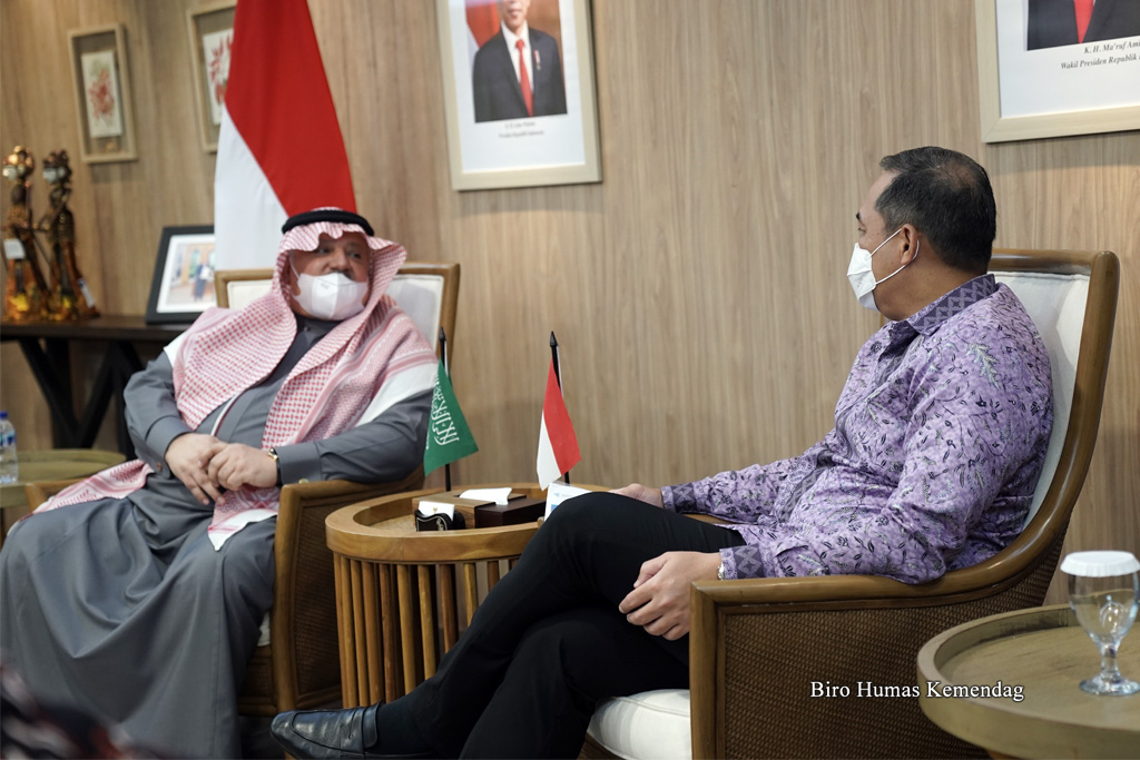 Menteri Perdagangan RI, Muhammad Lutfi menerima kunjungan Duta Besar Saudi Arabia Jakarta, Essam bin Abed Al-Thaqafi di Kantor Kementerian Perdagangan, Jakarta, Jumat (28 Jan).