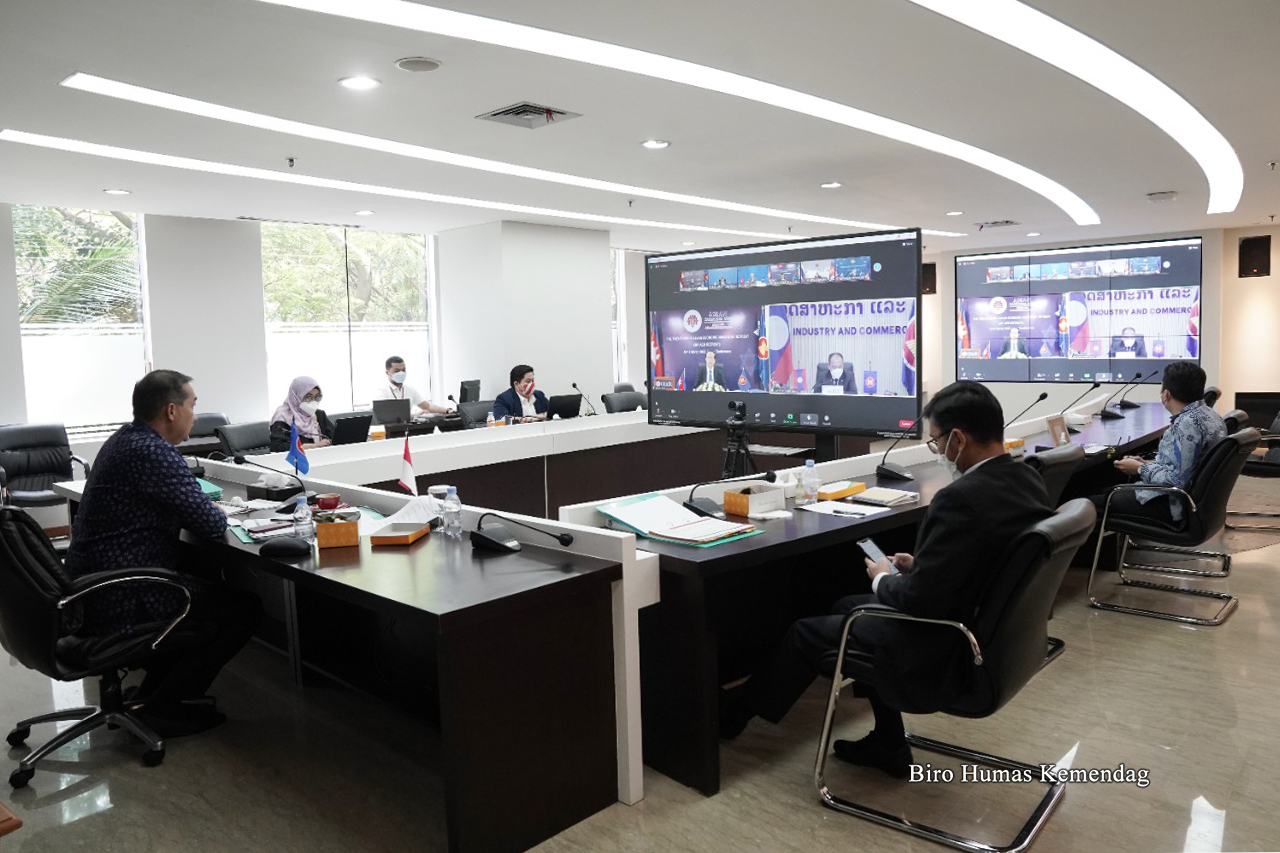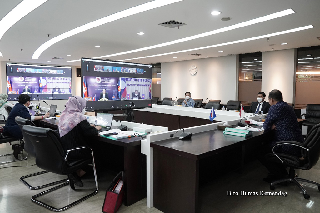 Menteri Perdagangan RI, Muhammad Lutfi menghadiri ASEAN Economic Ministers (AEM) Retreat ke-28 yang berlangsung secara virtual di Kantor Kementerian Perdagangan, Jakarta, Rabu (16 Mar).