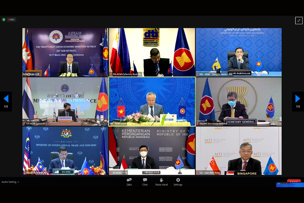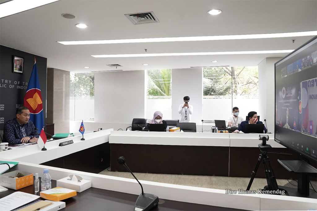 Pertemuan membahas upaya peningkatan dan fasilitasi perdagangan bersama ASEAN Businness Advisory Council (ASEAN-BAC) sebagai perwakilan pelaku usaha di ASEAN. Hal tersebut untuk mengatasi dampak ekonomi dari pandemi Covid-19 melalui inovasi digital dan tingginya biaya pengiriman kontainer di kawasan.