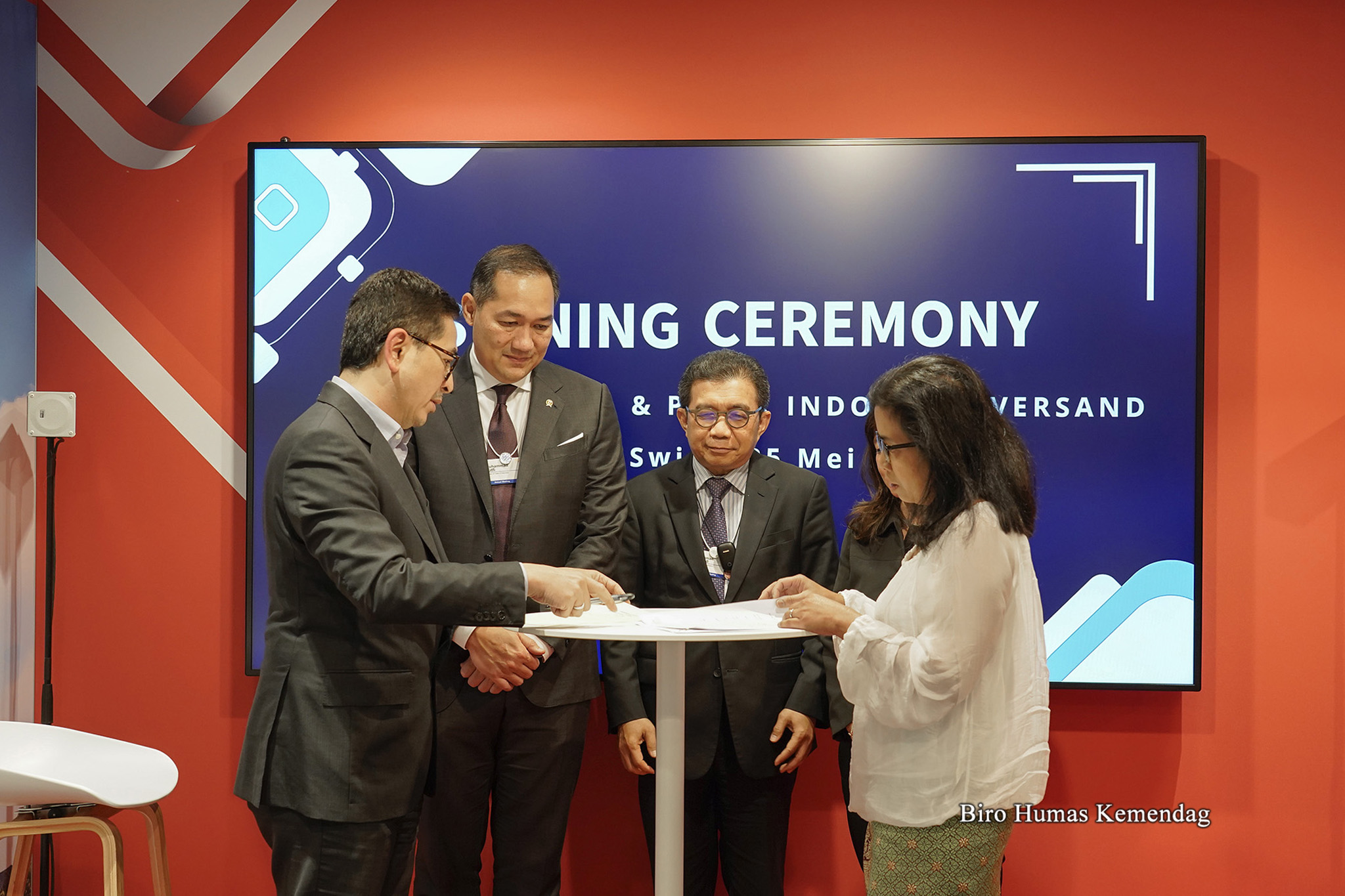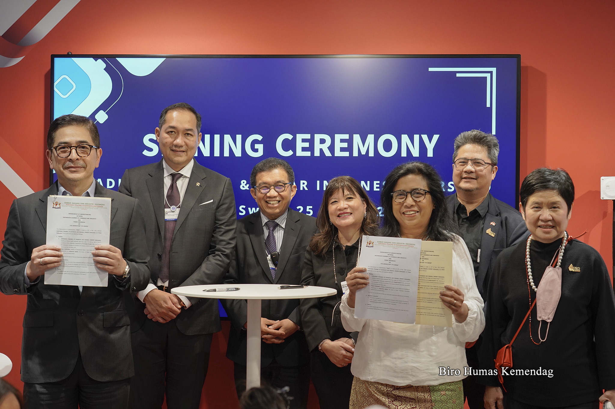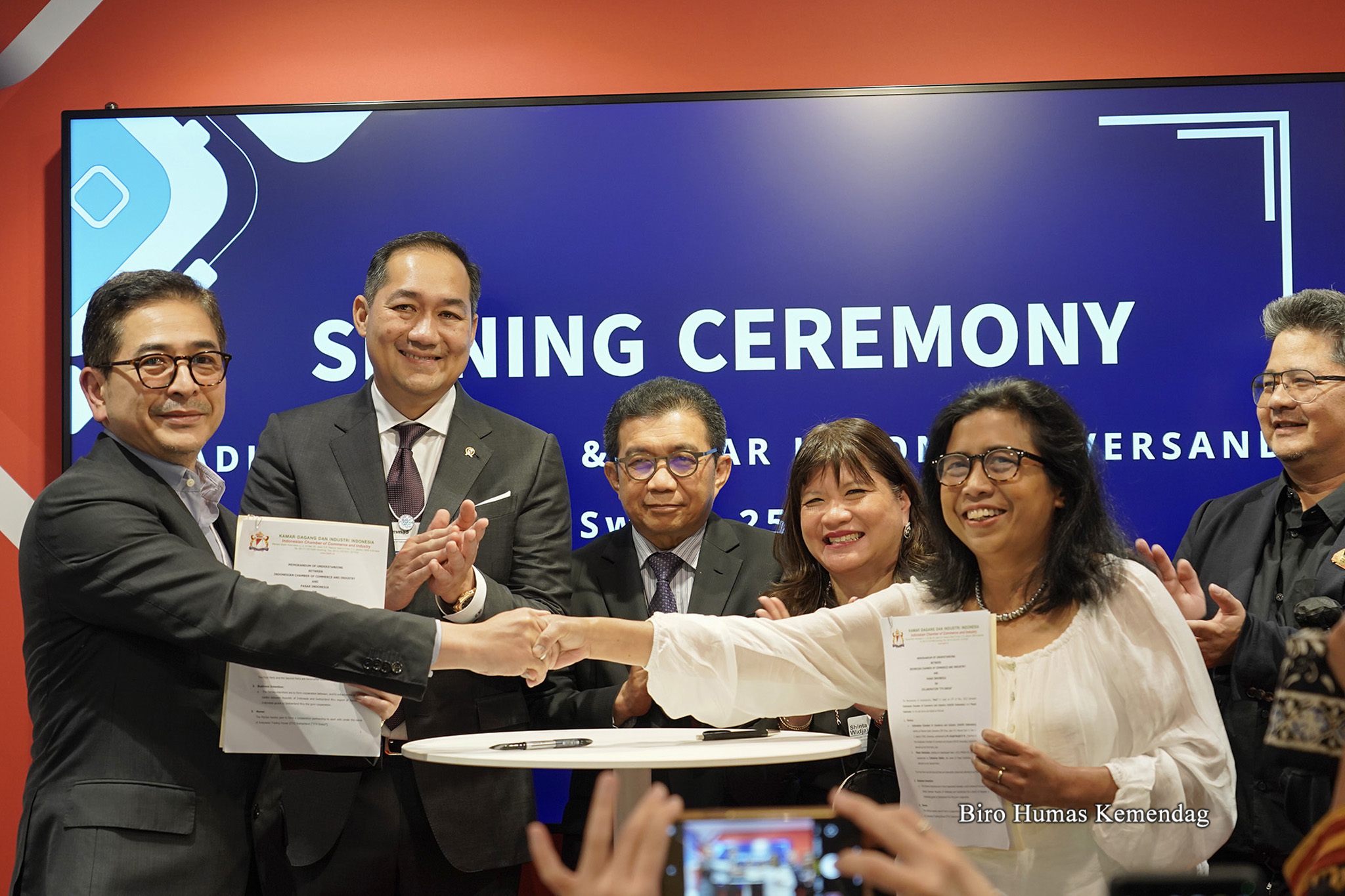 Penandatanganan dilakukan oleh Ketua Umum Kadin Indonesia, Arsjad Rasjid dengan pemilik Pasar Indonesia, Catharina Oehler. Pada kesempatan ini, turut hadir Duta Besar RI Bern, Muliaman Dharmansyah Hadad.