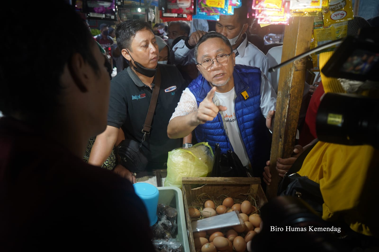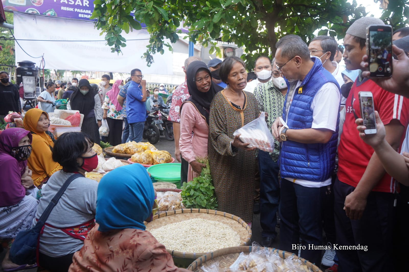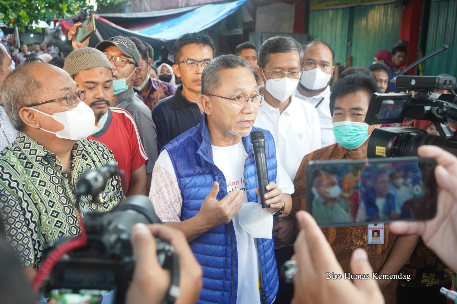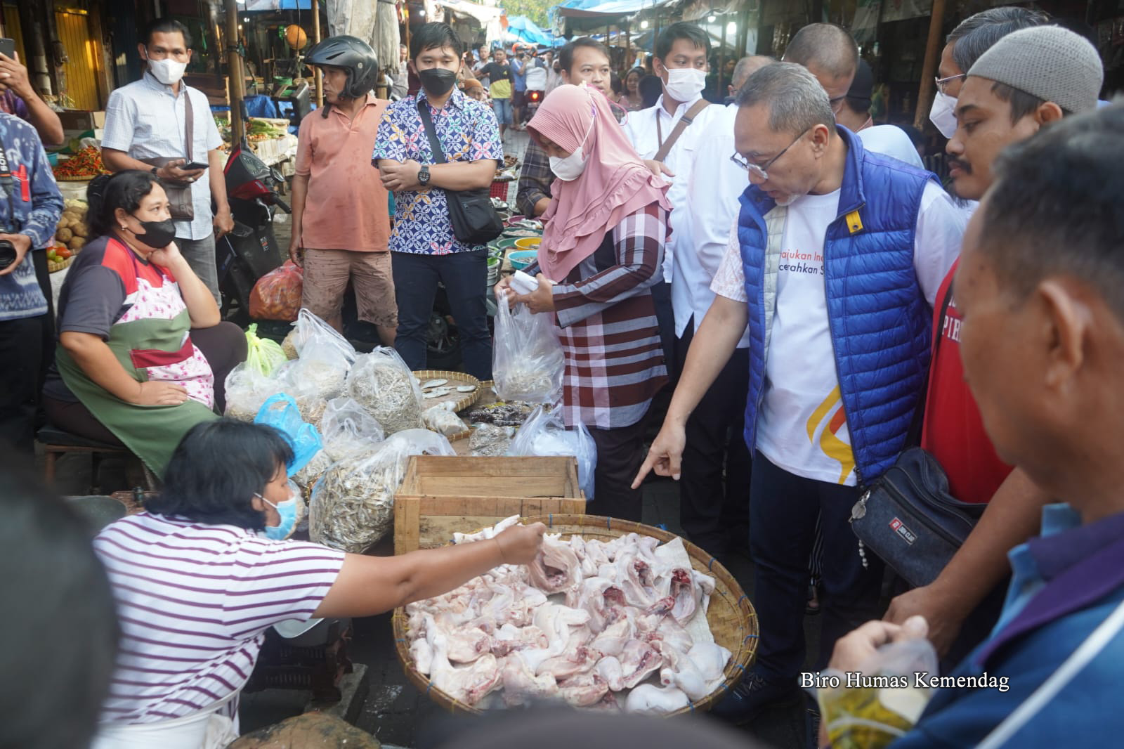 Menteri Perdagangan, Zulkifli Hasan meninjau harga dan ketersediaan barang kebutuhan pokok (bapok) di Pasar Karang Ayu, Semarang, Jawa Tengah, Minggu (11 Sep).