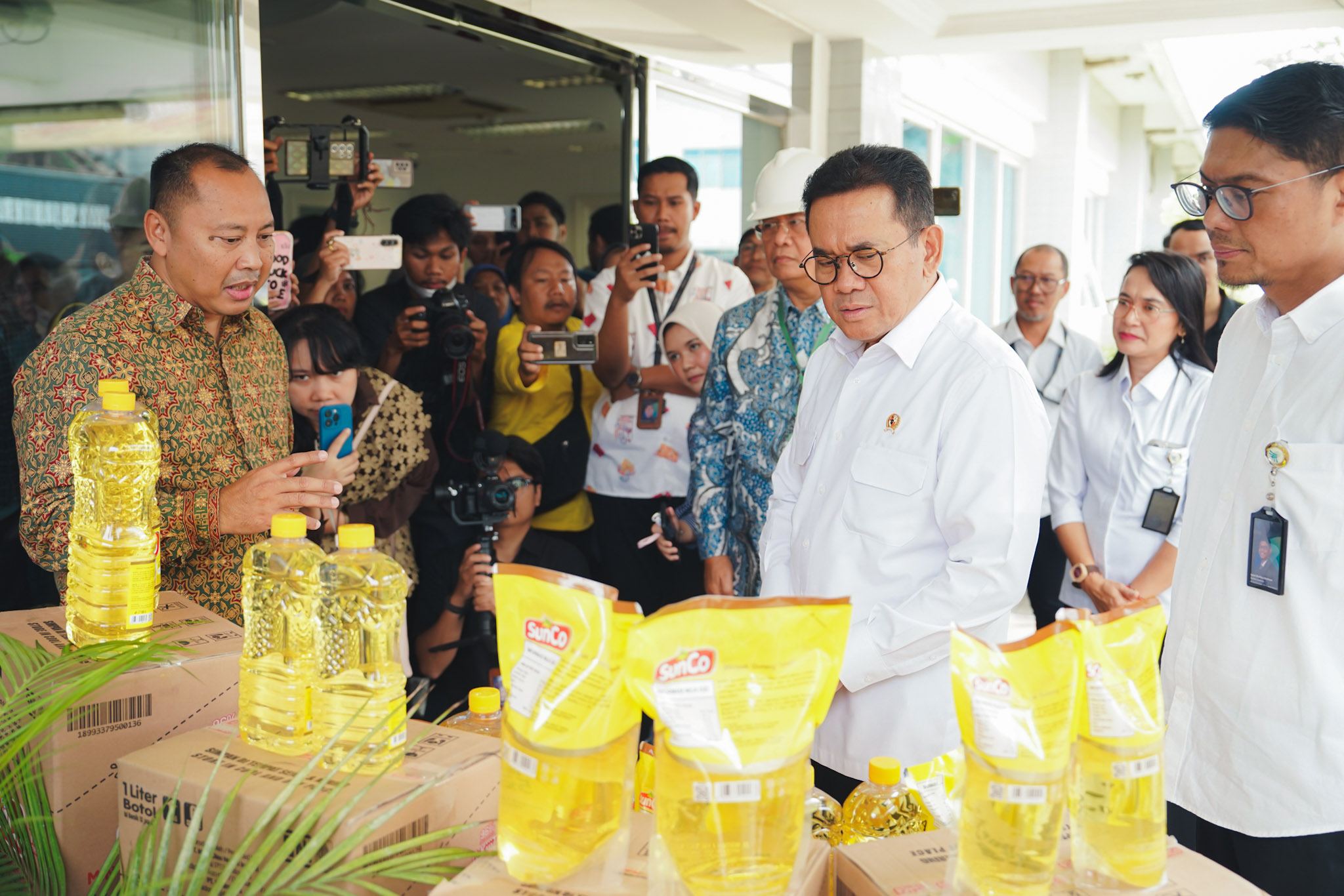 Menteri Perdagangan, Budi Santoso meninjau produksi minyak goreng di PT Mikie Oleo Nabati Industri, Bekasi, Jawa Barat, Kamis (5 Feb).