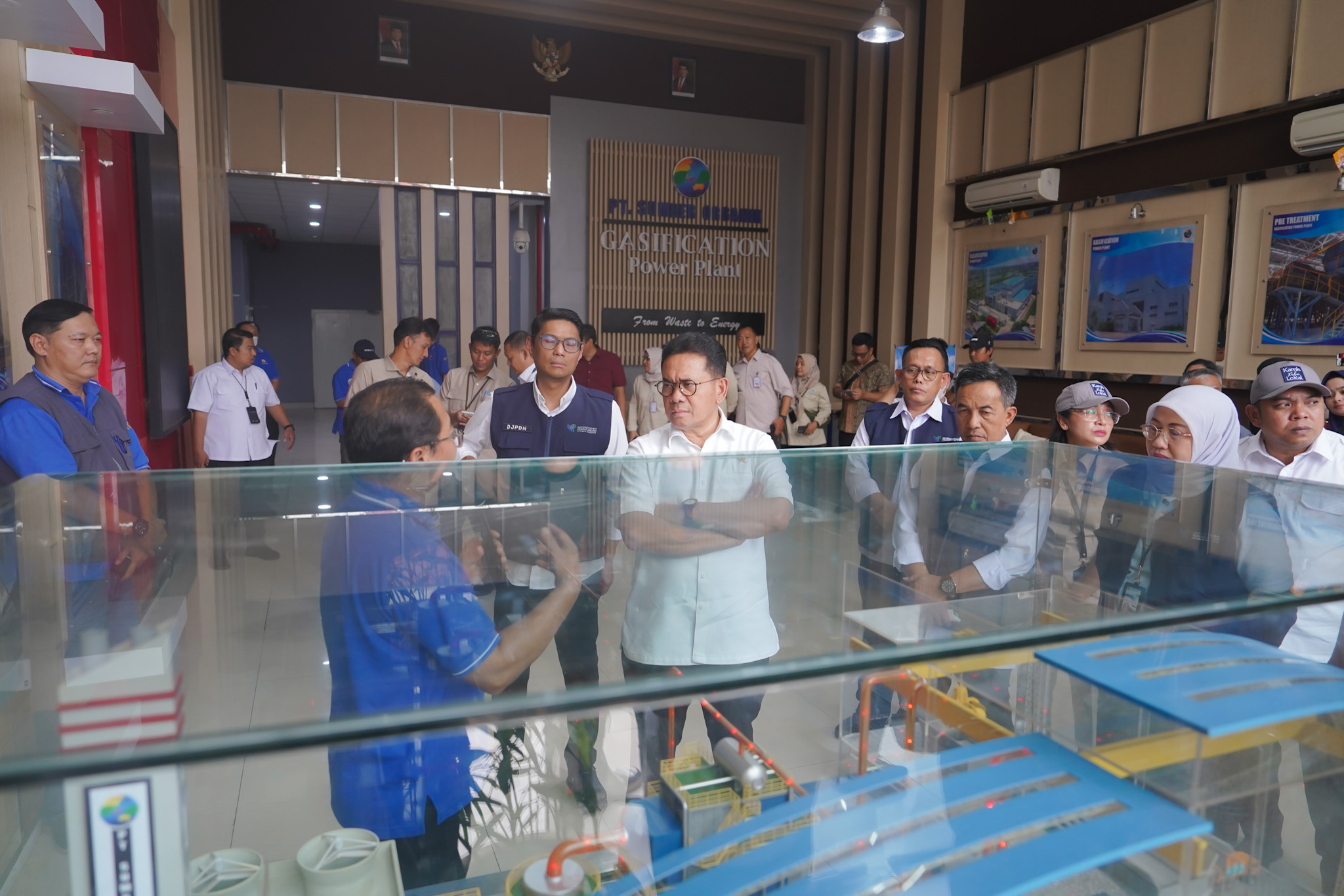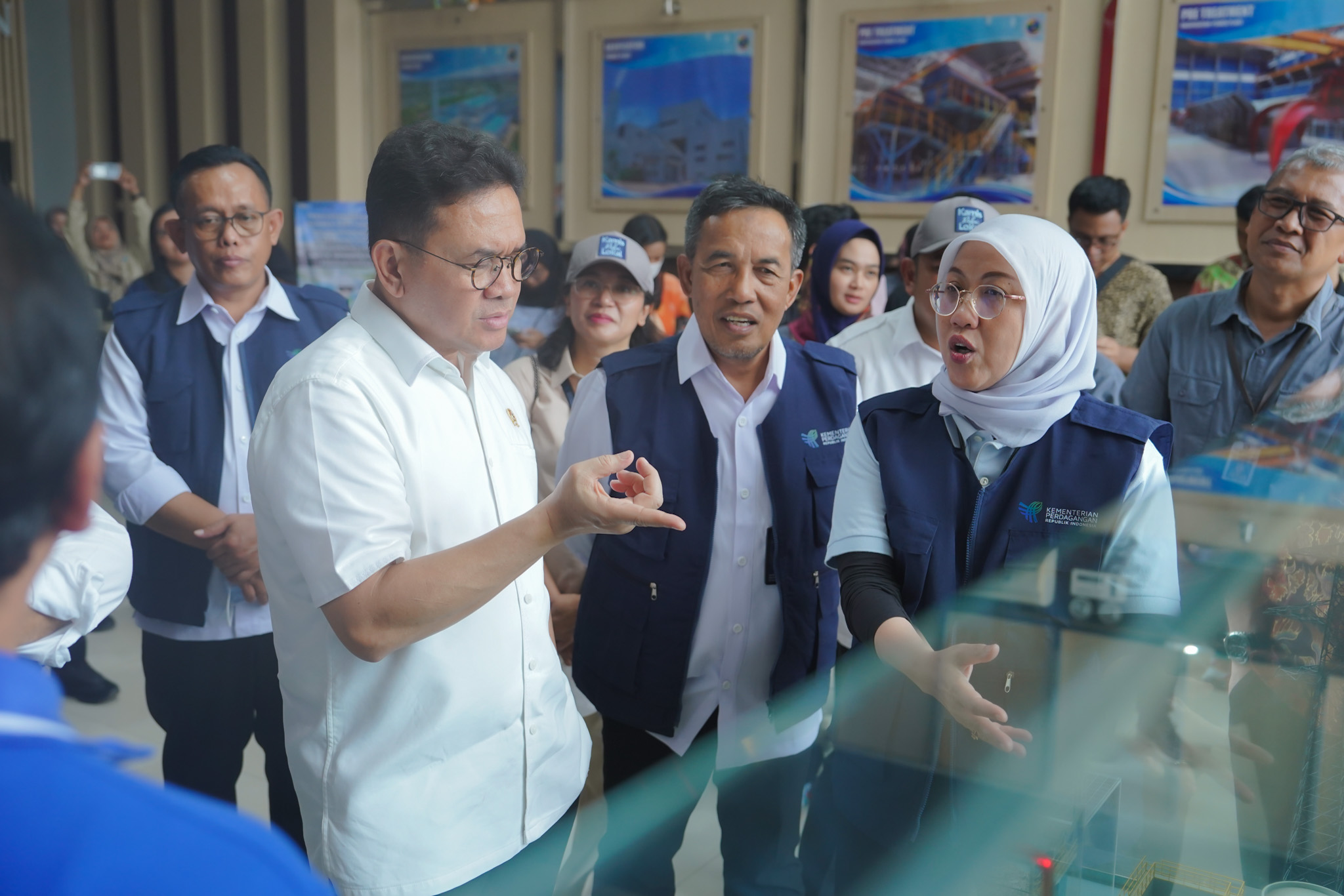 Menteri Perdagangan, Budi Santoso bersama Deputi Bidang Pengelolaan Sampah, Limbah, dan B3 KLH/BPLH, Hanifah Dwi Nirwana meninjau Fasilitas Pengolahan Sampah menjadi Energi Listrik (PSEL) Benowo di Surabaya, Jawa Timur, Kamis (13 Nov).