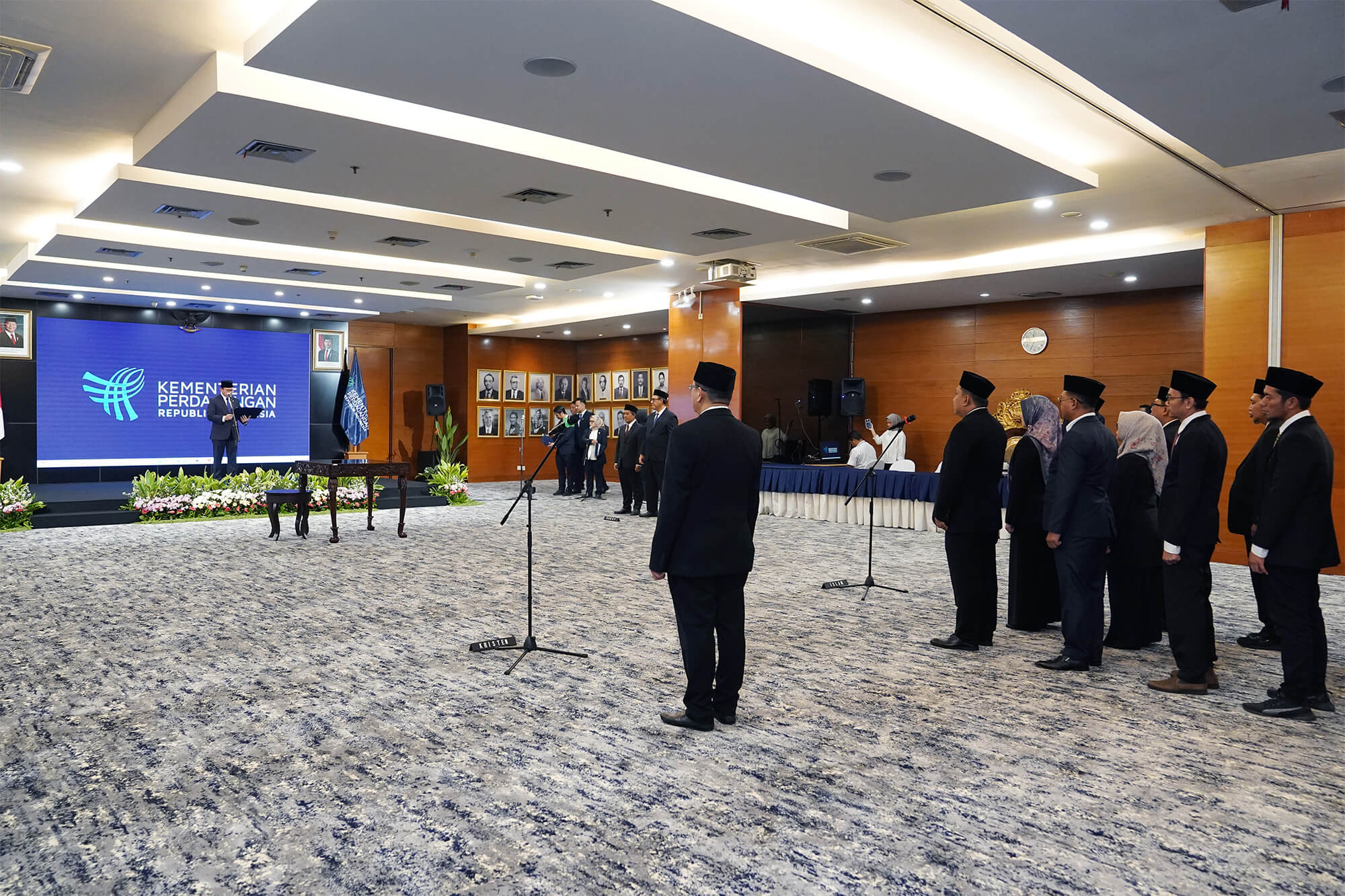 Menteri Perdagangan, Budi Santoso melantik Pejabat Pimpinan Tinggi Madya, Pejabat Pimpinan Tinggi Pratama, Pejabat Administrator dan Pejabat Pengawas di lingkungan Kementerian Perdagangan bertempat di Auditorium Kementerian Perdagangan, Jakarta, Senin (19 Jan). Upacara pelantikan dan pengambilan sumpah jabatan tersebut dihadiri oleh Wakil Menteri Perdagangan, Dyah Roro Esti dan para pejabat eselon I dan II di lingkungan Kementerian Perdagangan.