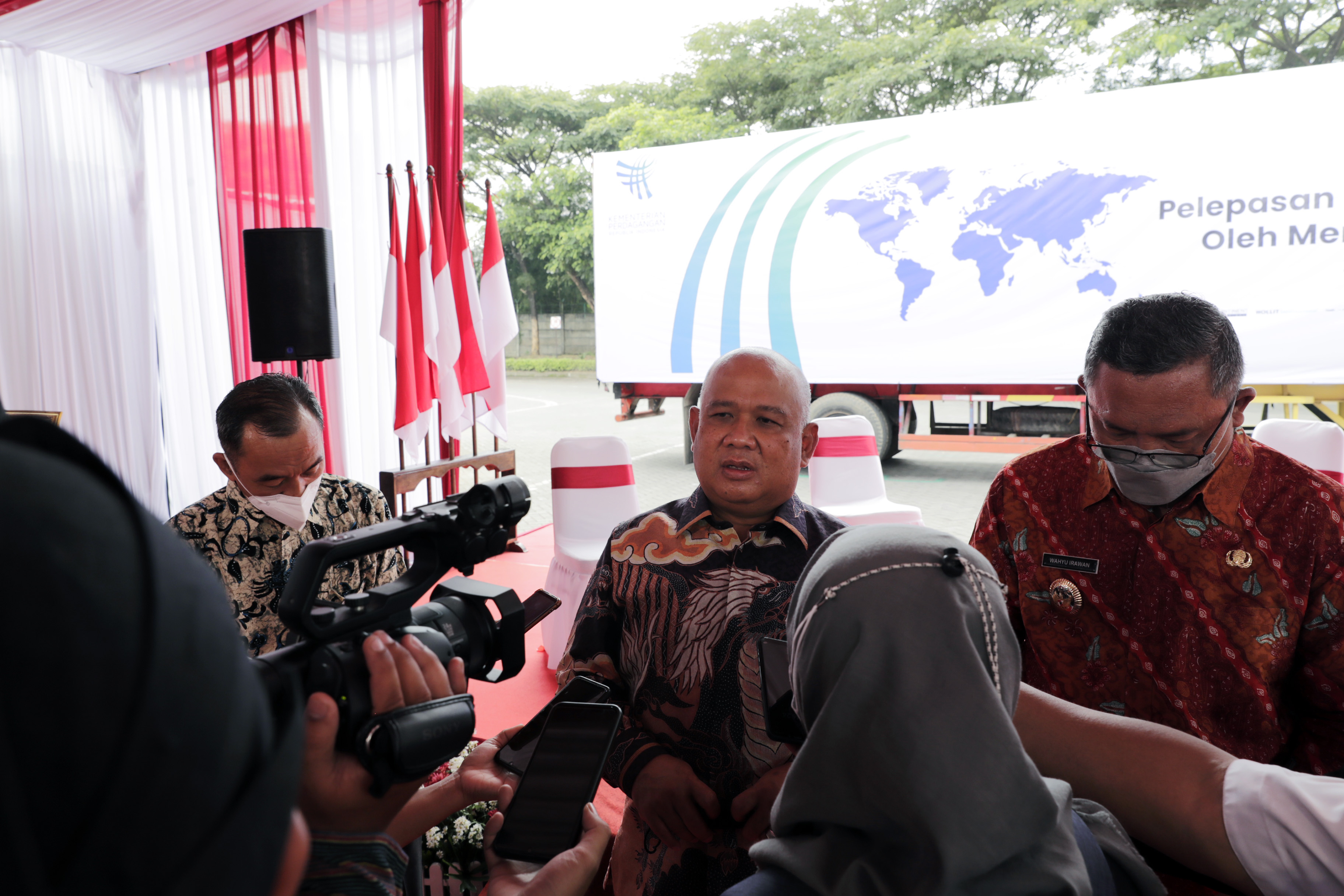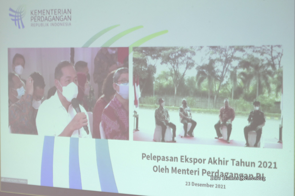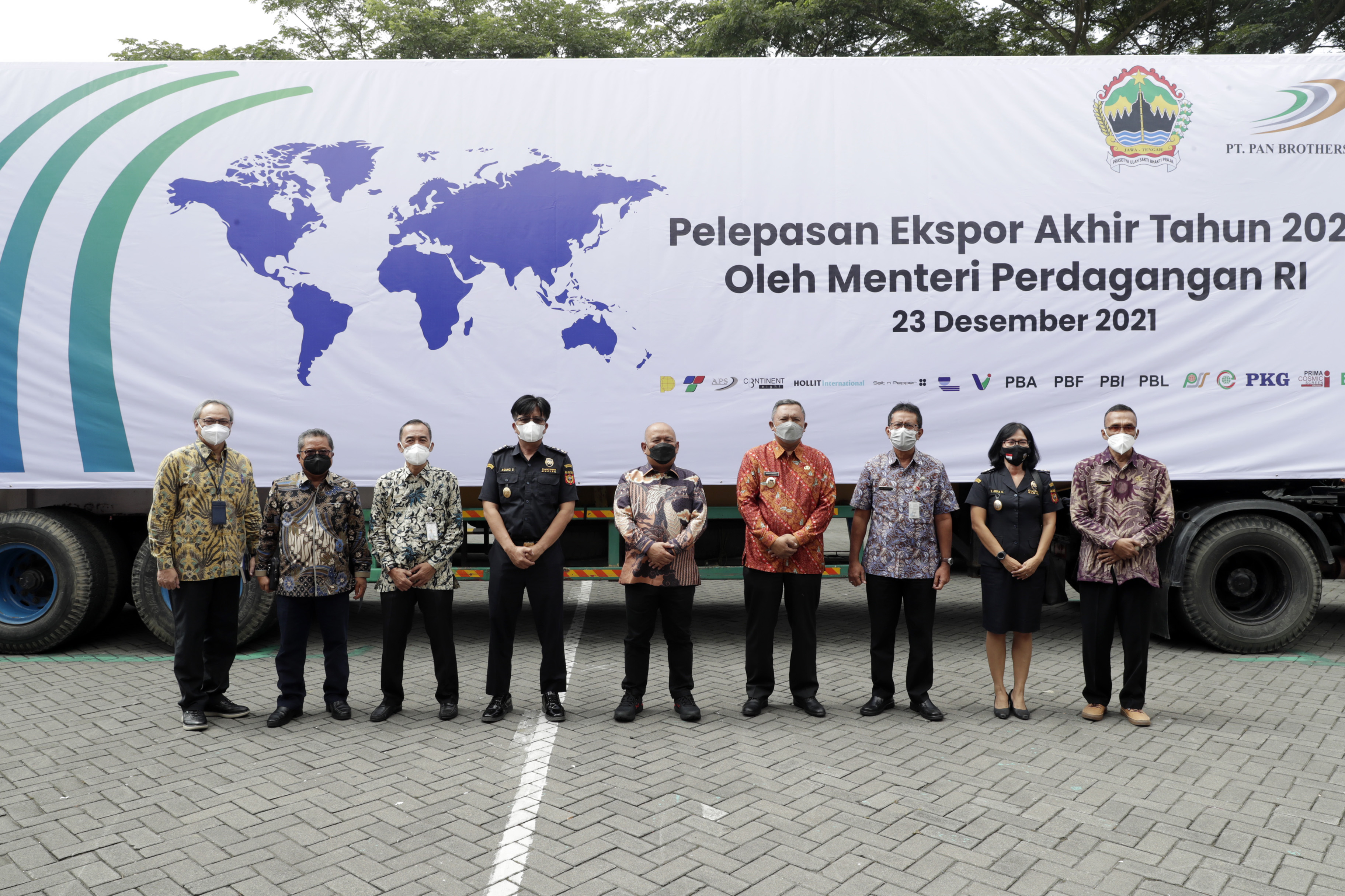 Sekretaris Jenderal Kementerian Perdagangan, Suhanto memimpin jalannya acara Pelepasan Ekspor Akhir Tahun 2021 di PT Pan Brothers Tbk, Boyolali, Jawa Tengah, Kamis (23 Des). Kegiatan ini merupakan acara pelepasan ekspor serentak yang dilakukan Kemendag secara serentak di 18 titik di 62 kabupaten/kota di 26 provinsi di Indonesia secara hibrida yang terpusat di PT Toyota Motor Manufacturing Indonesia di Karawang, Jawa Barat, yang dipimpin langsung oleh Menteri Perdagangan, Muhammad Lutfi.