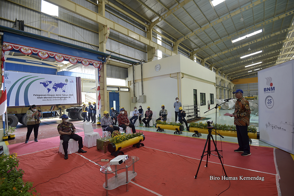 Kementerian Perdagangan melepas ekspor secara hibrida yang diikuti 278 eksportir dari 62 kabupaten/kota di 26 provinsi, Kamis (23 Des). Direktur Jenderal Perdagangan dalam Negeri, Oke Nurwan memimpin pelepasan ekspor di PT Bina Niaga Multiusaha di Cikarang, Jawa Barat.