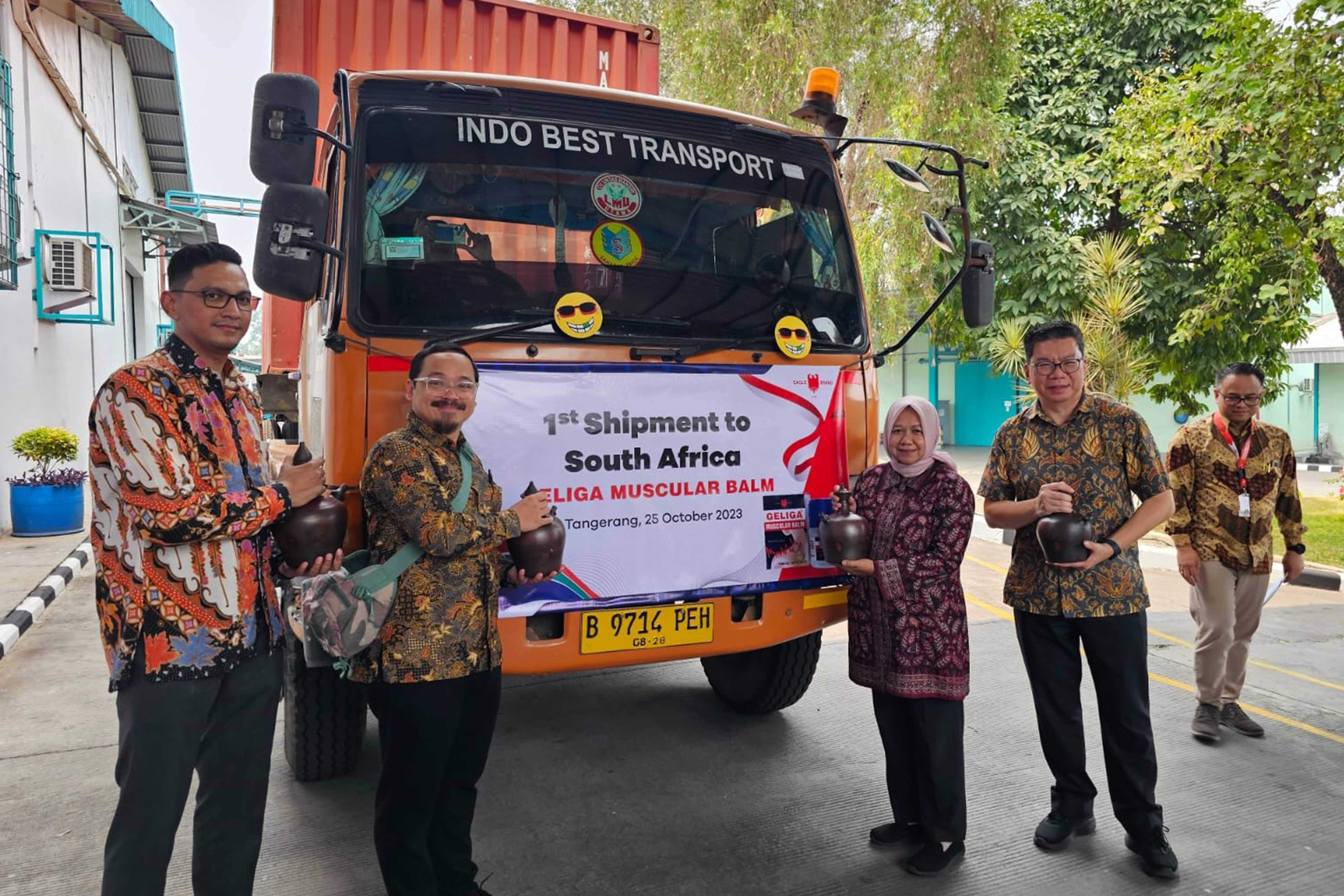 Ekspor produk balsam Geliga Muscular Balm (Balsem Otot Geliga) ini merupakan bagian dari implementasi MoU yang ditandatangani di Trade Expo Indonesia 2023 antara produksi PT Eagle Indo Pharma dengan mitra asal Afrika Selatan, BCAP Afrika.