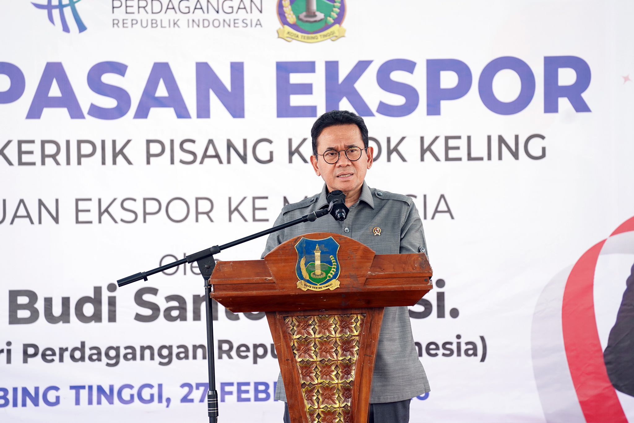 Menteri Perdagangan, Budi Santoso melepas ekspor sembilan ton keripik pisang kepok merek Archila ke Malaysia senilai Rp270 juta yang berlangsung di Kota Tebing Tinggi, Sumatra Utara, Jumat, (27 Feb).