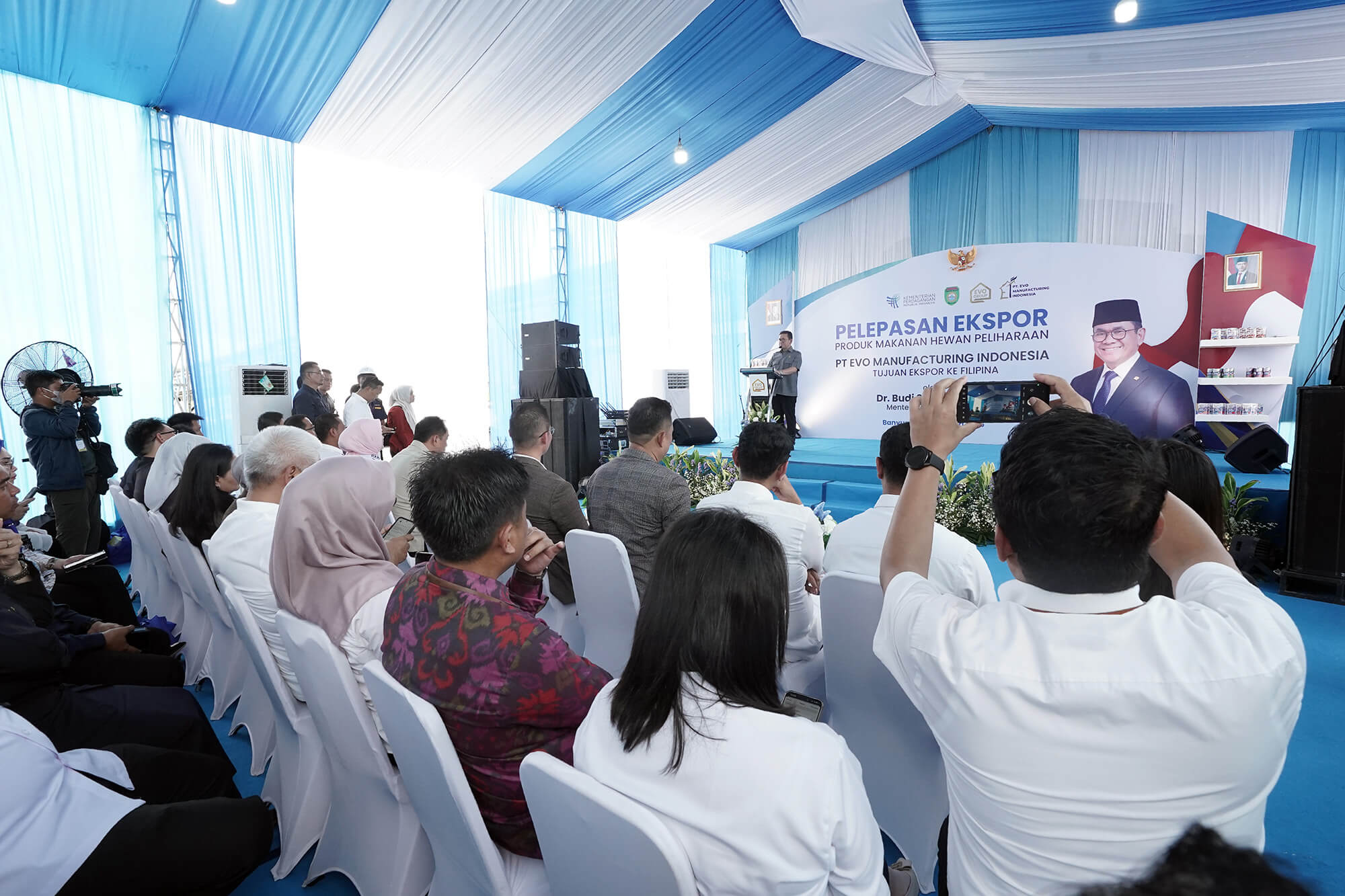 Menteri Perdagangan, Budi Santoso melakukan pelepasan ekspor produk makanan hewan milik PT Evo Manufacturing Indonesia (EMI) ke Filipina dengan nilai USD 176 ribu di Kabupaten Banyuasin, Sumatra Selatan, Kamis (12 Feb).