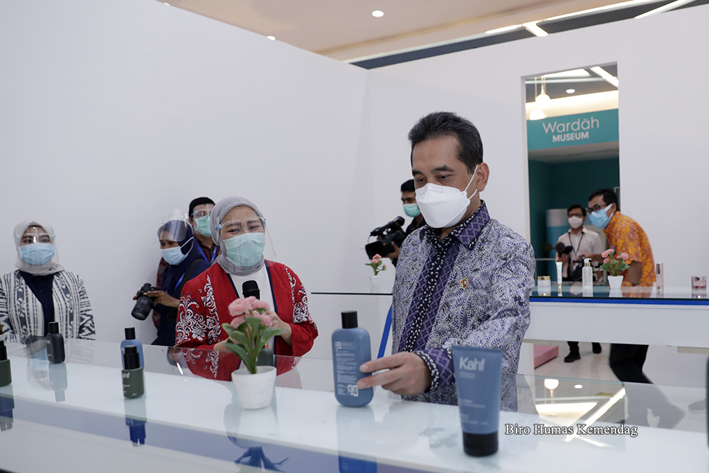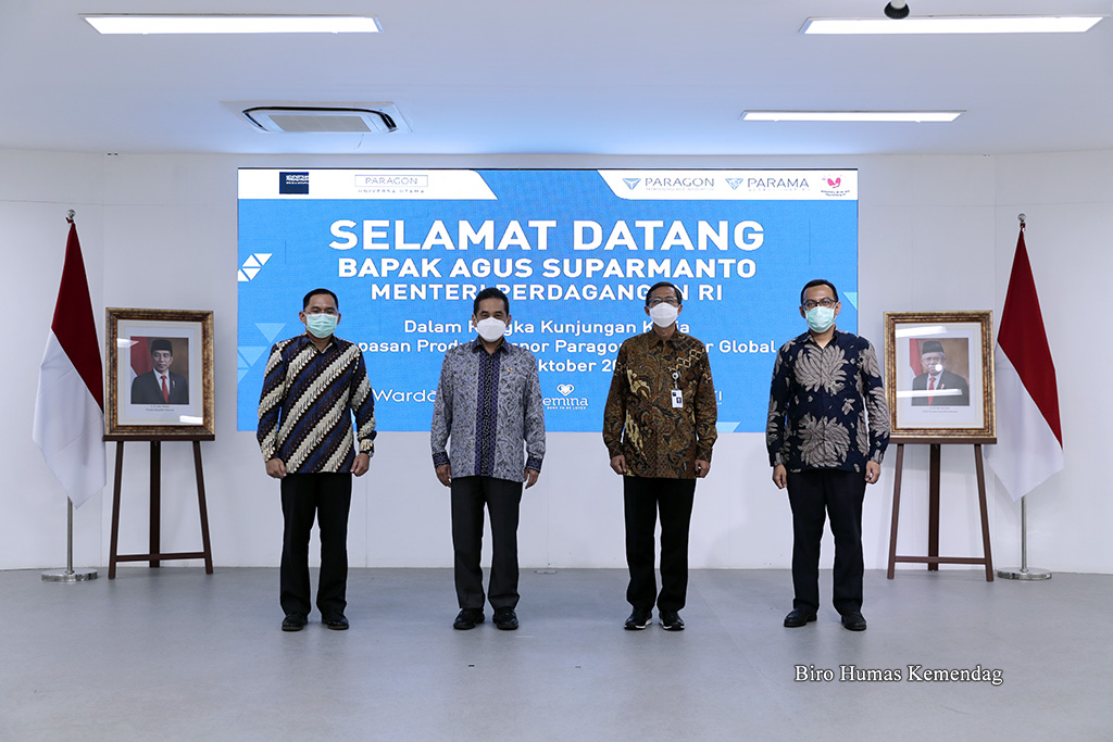 Menteri Perdagangan, Agus Suparmanto melepas enam kontainer ekspor PT Paragon Technology and Innovation ke Malaysia periode Oktober 2020 untuk produk kosmetik dan perawatan wajah dengan merek Wardah senilai Rp22,9 miliar yang berlangsung di Tangerang, Banten, Senin (26 Okt).