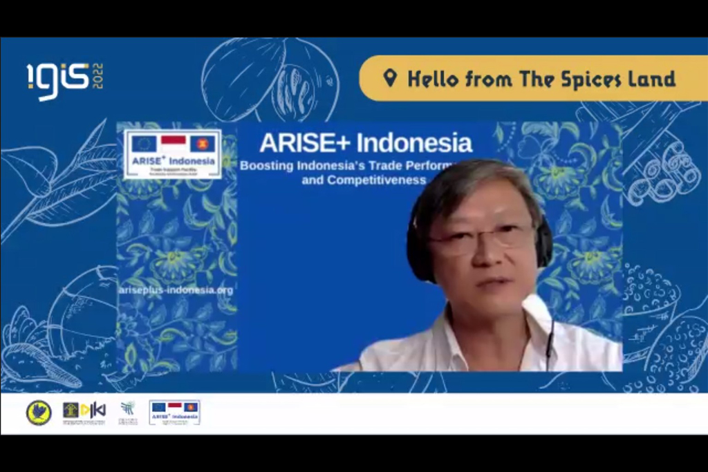 Turut hadir memberikan sambutan dalam acara ini Direktur Merek dan Indikasi Geografis Direktorat Jenderal Kekayaan Intektual, Kurniawan Telaumbanua; Head of Cooperation The European The Europen Union Delegation to Indonesia and Brunei Darussalam, Thibout Portevin; dan Team Leader ARISE+ Indonesia Technical Assistance Team, Marc Kwai Pun.