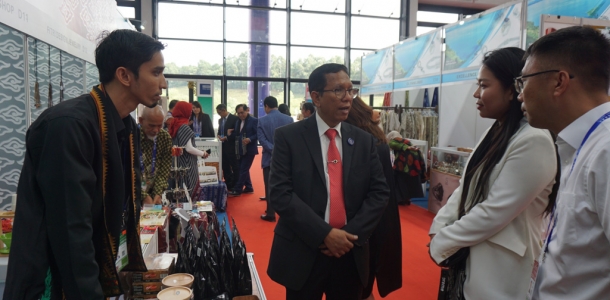 Paviliun Komoditas Indonesia pada China-ASEAN EXPO (CAEXPO) 2019 resmi dibuka di Nanning International Convention & Exhibition Center (NICEC), Tiongkok, Jumat (20 Sep). Pembukaan dilakukan oleh Direktur Jenderal Pengembangan Ekspor Nasional, Dody Edward bersama Kepala BBPPEI, Noviani Vrisvintati.
