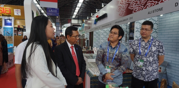 Kemudian, Dirjen PEN melakukan kunjungan ke pelaku usaha peserta pameran CAEXPO 2019 di Paviliun Komoditi Indonesia.