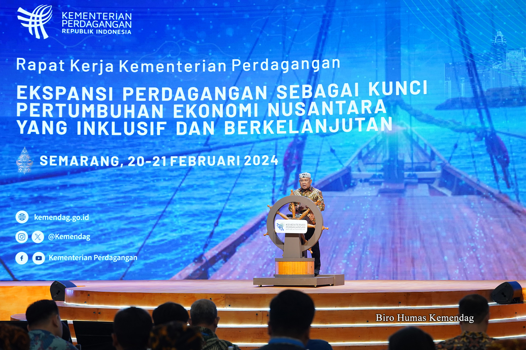 Menteri Perdagangan, Zulkifli Hasan membuka Rapat Kerja Kementerian Perdagangan Tahun 2024 yang berlangsung di Semarang, Jawa Tengah, Selasa (20 Feb).