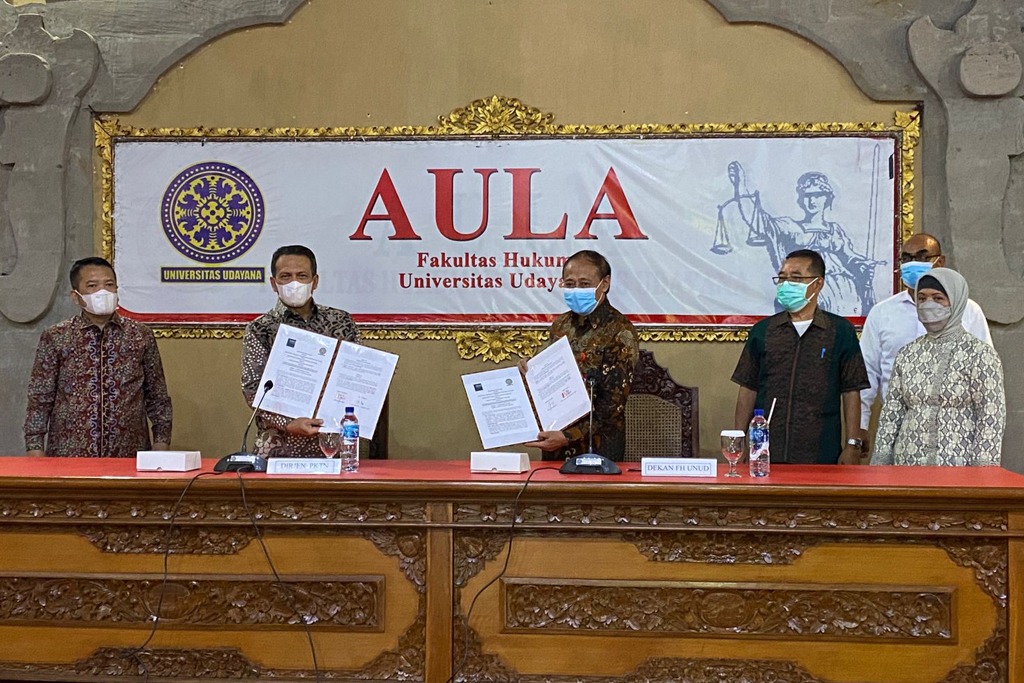 Direktur Jenderal Perlindungan Konsumen dan Tertib Niaga, Veri Anggrijono bersama Dekan Fakultas Hukum Universitas Udayana, Putu Gede Arya Sumerta Yasa menandatangani Perjanjian Kerja Sama antara Direktorat Jenderal Perlindungan Konsumen dan Tertib Niaga Kementerian Perdagangan dengan Universitas Udayana di Universitas Udayana, Denpasar, Bali, Jumat (17 Des). Penandatanganan perjanjian kerja sama tersebut bertujuan untuk mewujudkan konsumen Indonesia cerdas dan berdaya.