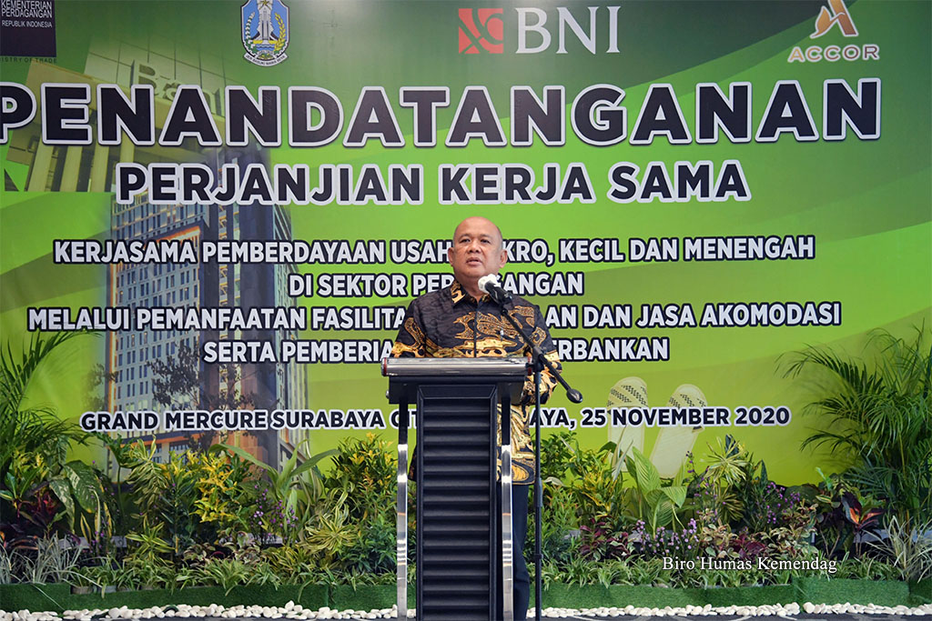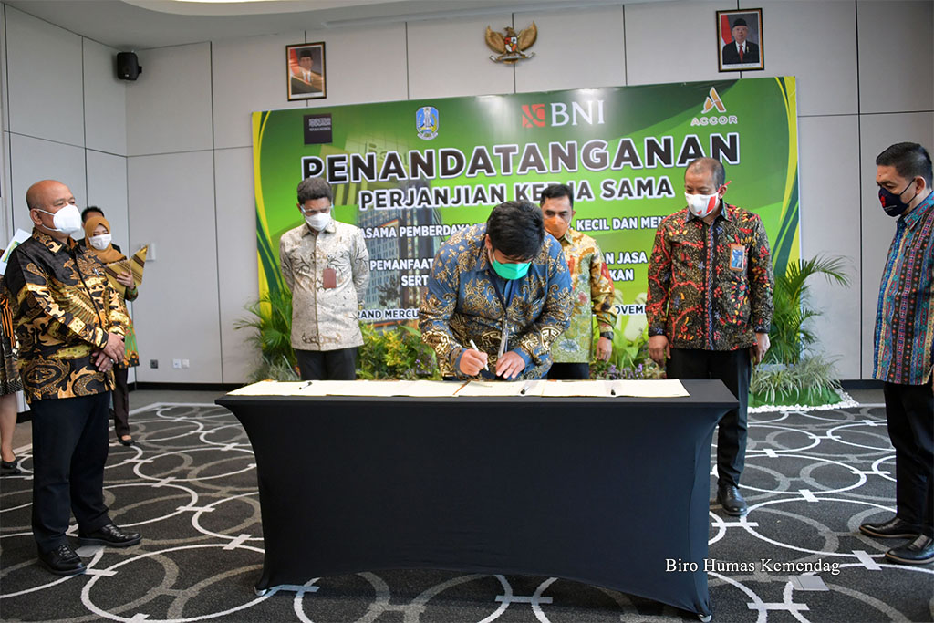 Penandatangan kerja sama ini dilakukan oleh Kepala Dinas Perindag Jawa Timur, Drajat Irawan; Vice President PT Accor Asia Pacific Indonesia, Adi Satria; Sekretaris Ditjen Perdagangan Dalam Negeri, Johni Martha; dan Pemimpin Kantor BNI Wilayah Surabaya, Muhammad Gunawan Putra. Pada kesempatan ini juga dilakukan Penandatanganan Kontrak Penyediaan Kebutuhan Hotel antara Accor Group dan UMKM, Penyerahan secara simbolis Kredit bagi UMKM serta Penyerahan Bantuan Alat Produksi Bagi UMKM.