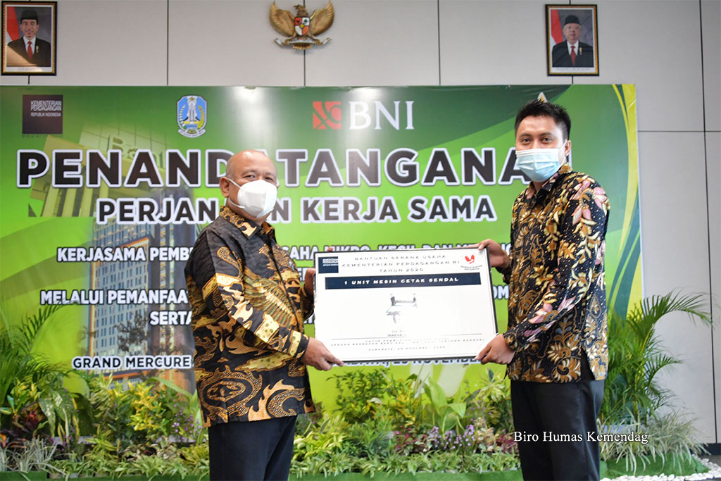 Kegiatan ini merupakan tindak lanjut penandatanganan sebelumnya yang telah dilakukan di Provinsi Jawa Tengah pada 15 Oktober dan D.I. Yogyakarta pada 16 Oktober 2020. Pada kesempatan ini, Kemendag juga menyerahkan bantuan alat potong untuk membuat sandal yang diserahkan secara langsung oleh Sekjen Suhanto. (apn)