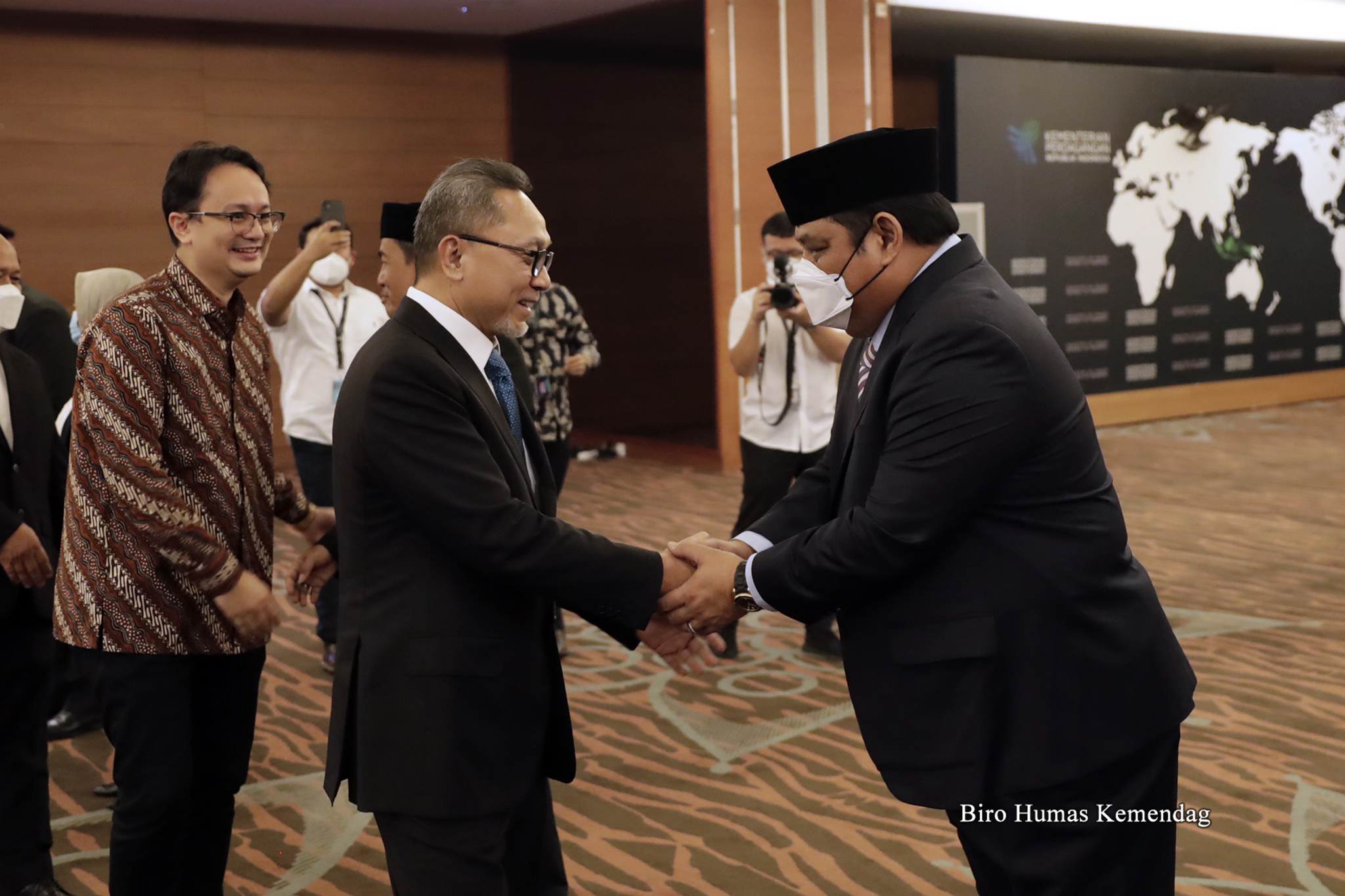 Menteri Perdagangan, Zulkifli Hasan mengambil sumpah jabatan dan melantik pejabat pimpinan tinggi Kementerian Perdagangan di Kantor Kemendag, Jakarta, Senin (25 Juli).