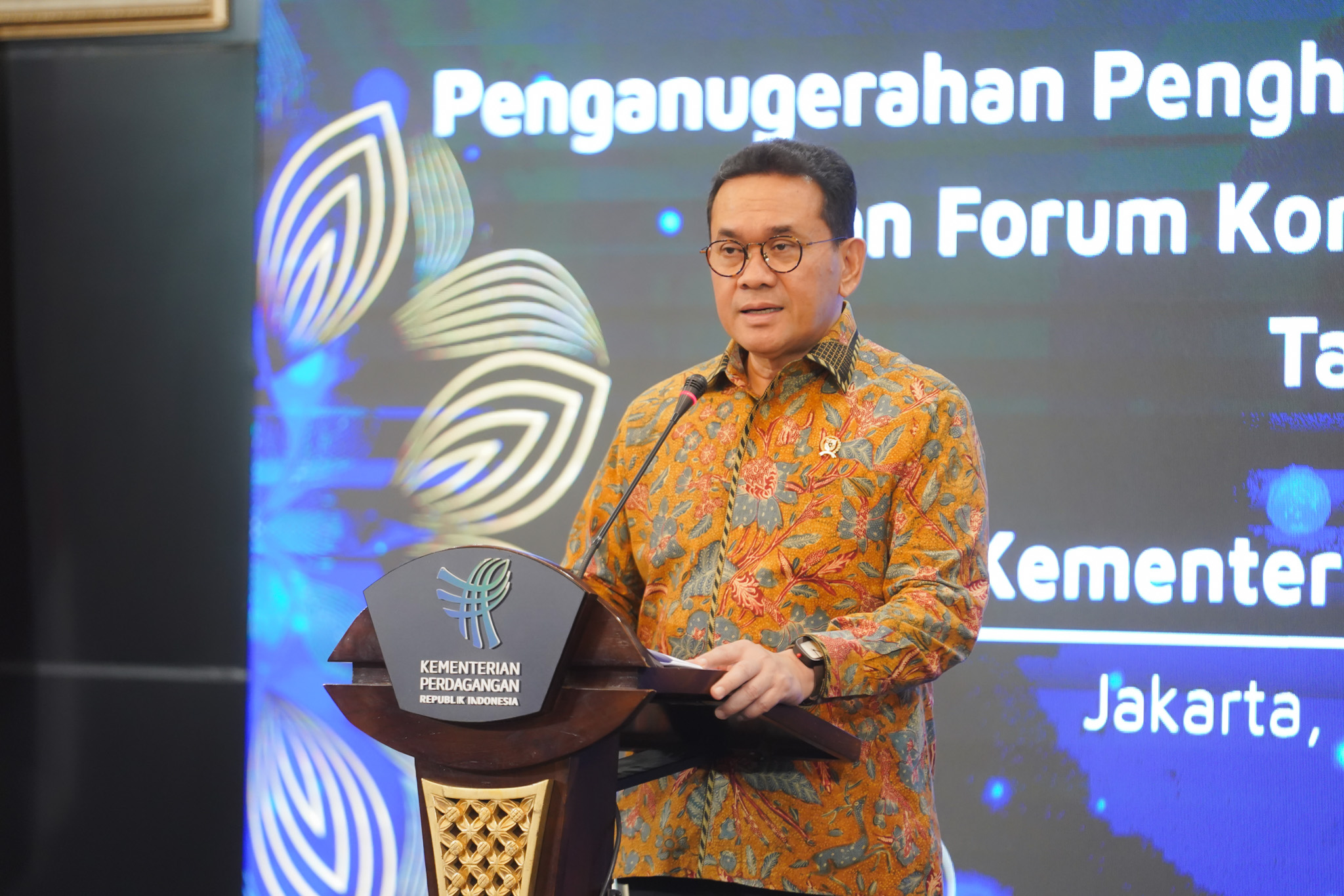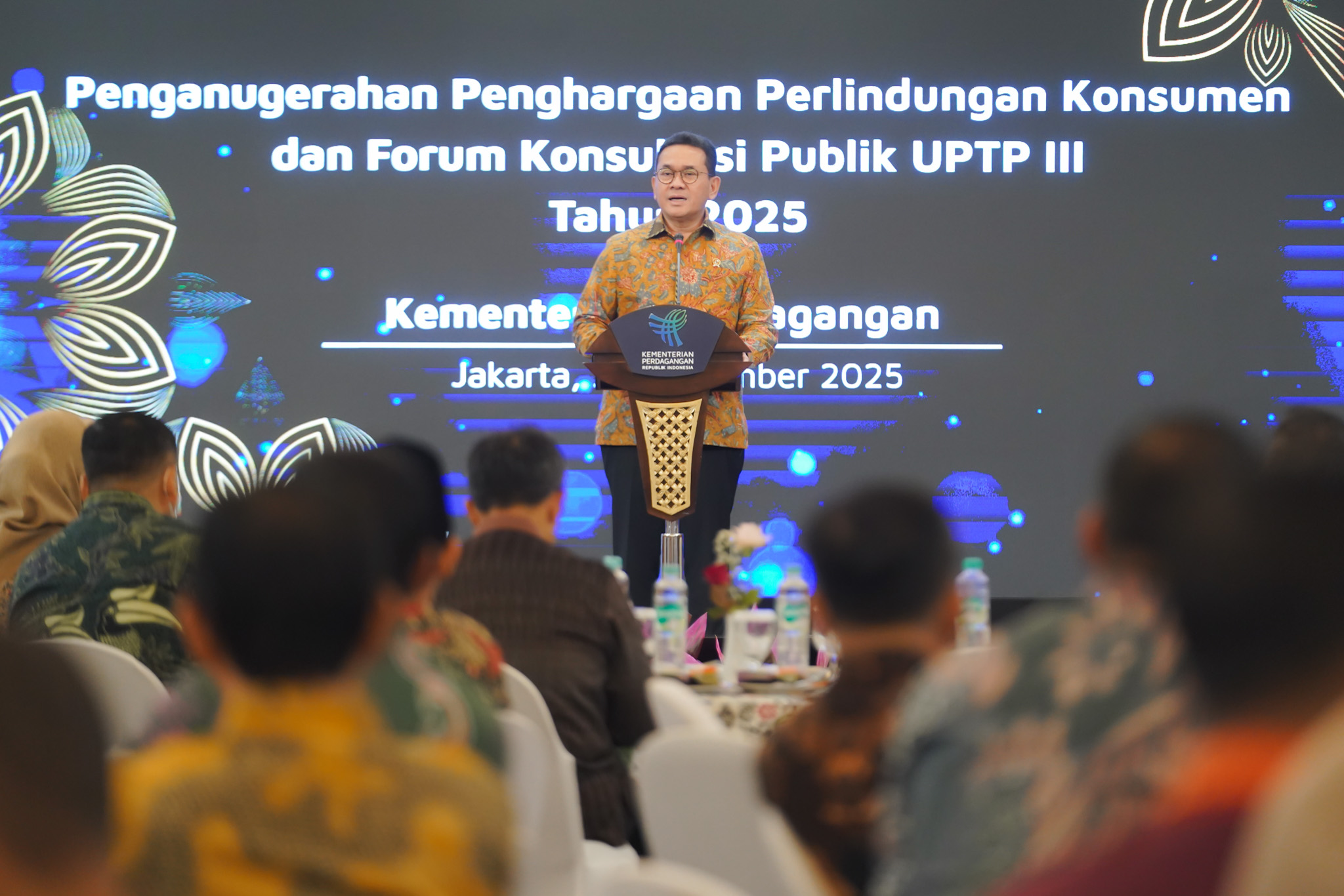 Menteri Perdagangan, Budi Santoso memberikan Penghargaan Perlindungan Konsumen 2025 yang berlangsung di Kantor Kementerian Perdagangan, Jakarta, Kamis (27 Nov).