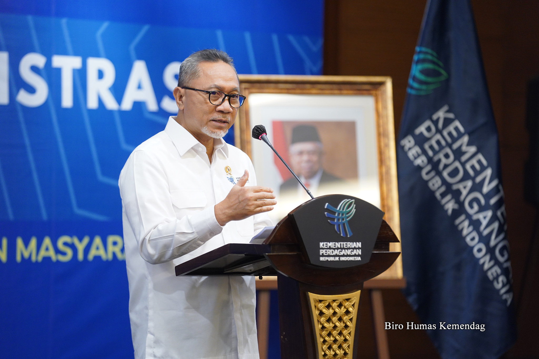 Menteri Perdagangan, Zulkifli Hasan memberikan arahan pada acara Penganugerahan Wilayah Tertib Administrasi (WTA) Tahun 2022 yang dilaksanakan di Kantor Kementerian Perdagangan, Jakarta, Rabu (7 Des).