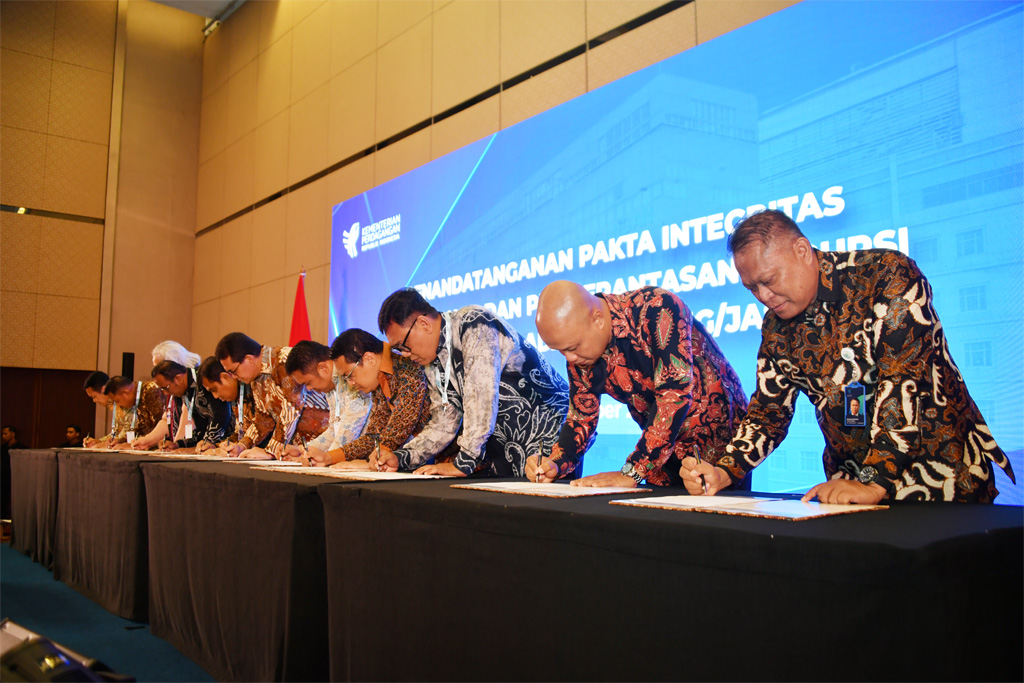 Pada kesempatan ini, juga dilaksanakan penandatanganan Pakta Integritas Pencegahan dan Pemberantasan Korupsi oleh seluruh pelaku pengadaan barang dan jasa di lingkungan Kementerian Perdagangan sebagai salah satu pelaksanaan tindak lanjut hasil Survei Penilaian Integritas (SPI) Tahun 2024.