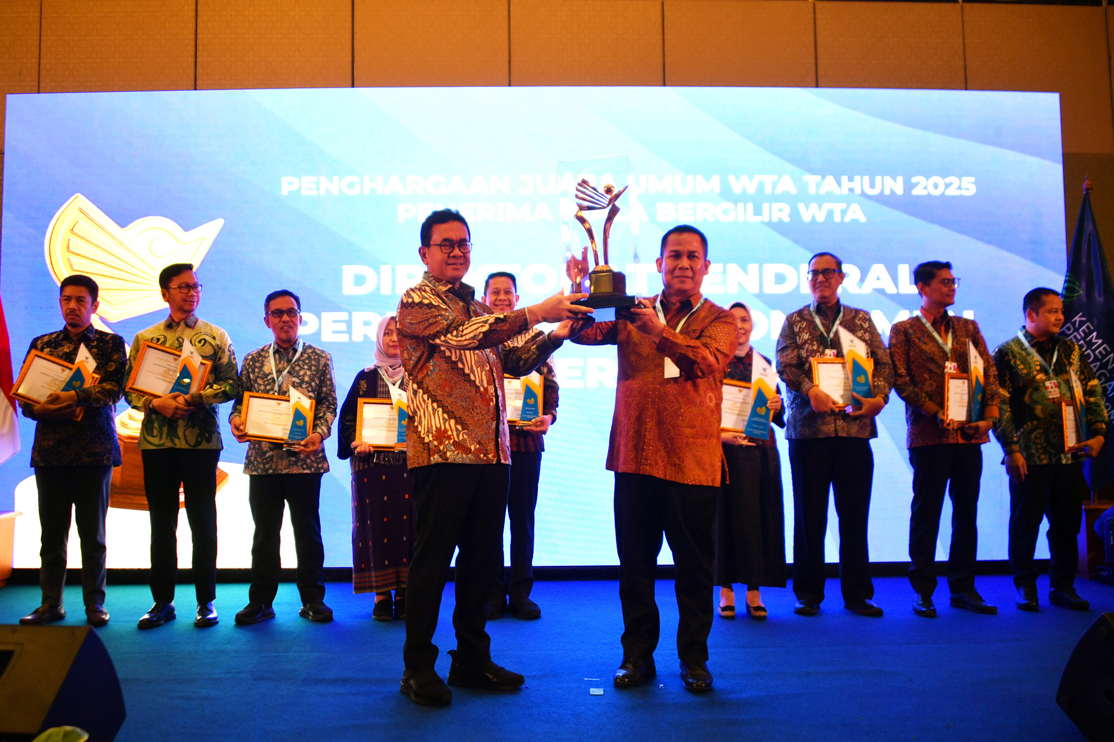 Menteri Perdagangan , Budi Santoso memberikan Penganugerahan Wilayah Tertib Administrasi (WTA) Tahun 2025 Kementerian Perdagangan dan Penandatanganan Pakta Integritas Pencegahan dan Pemberantasan Korupsi dalam Pengadaan Barang/Jasa yang berlangsung di ICE BSD, Kabupaten Tangerang, Minggu (19 Okt)