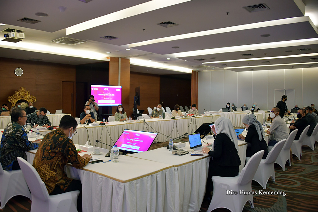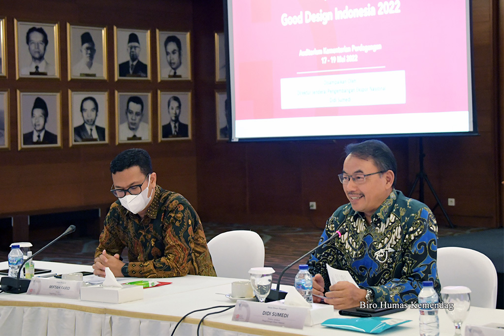Direktur Jenderal Pengembangan Ekspor Nasional, Didi Sumedi memberikan pengarahan pada Rapat Dewan Pengarah dan Tim Juri Good Design Indonesia (GDI) Tahun 2022 yang berlangsung di Auditorium Kantor Kementerian Perdagangan, Jakarta, Selasa (17 Mei).