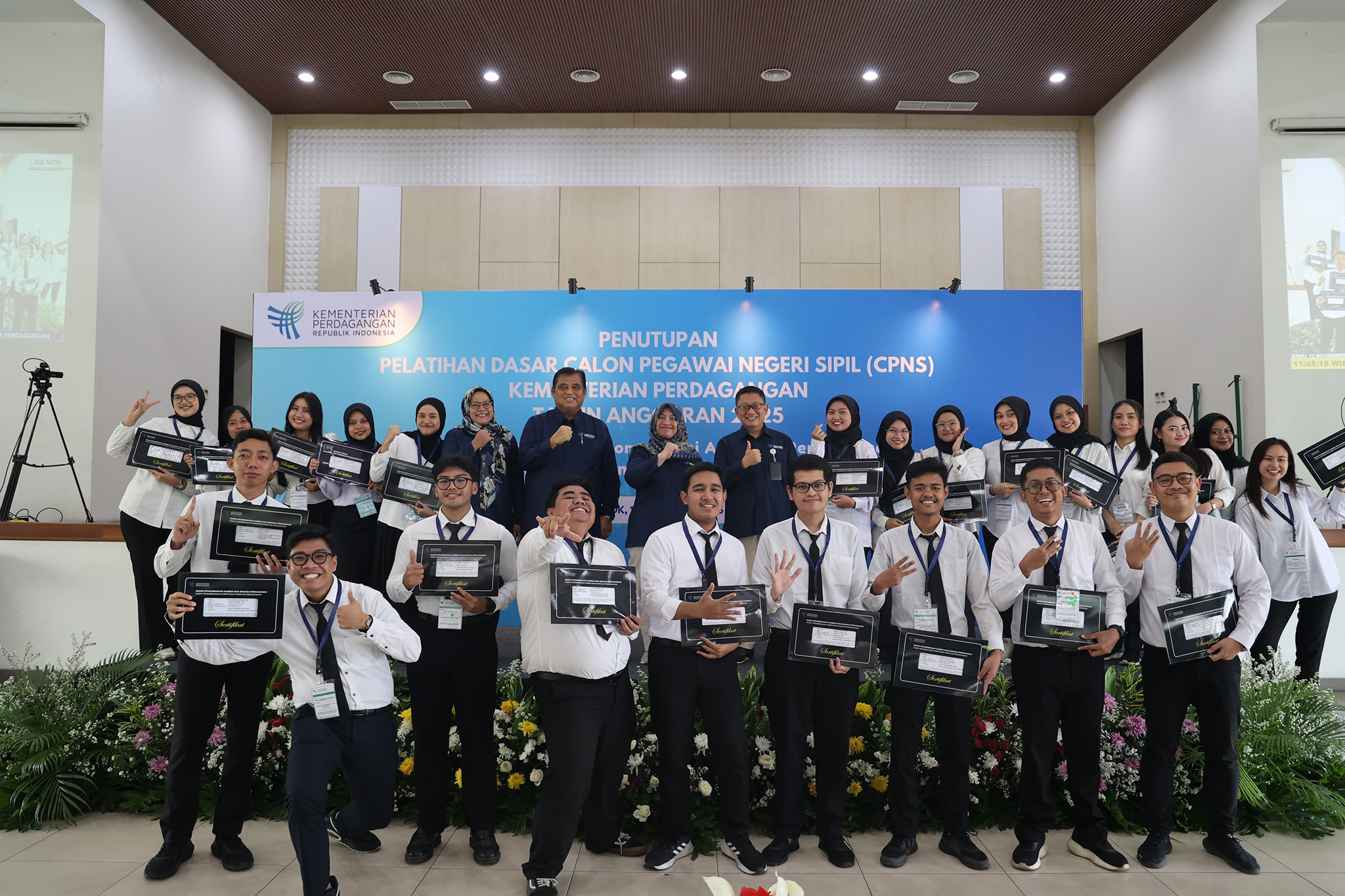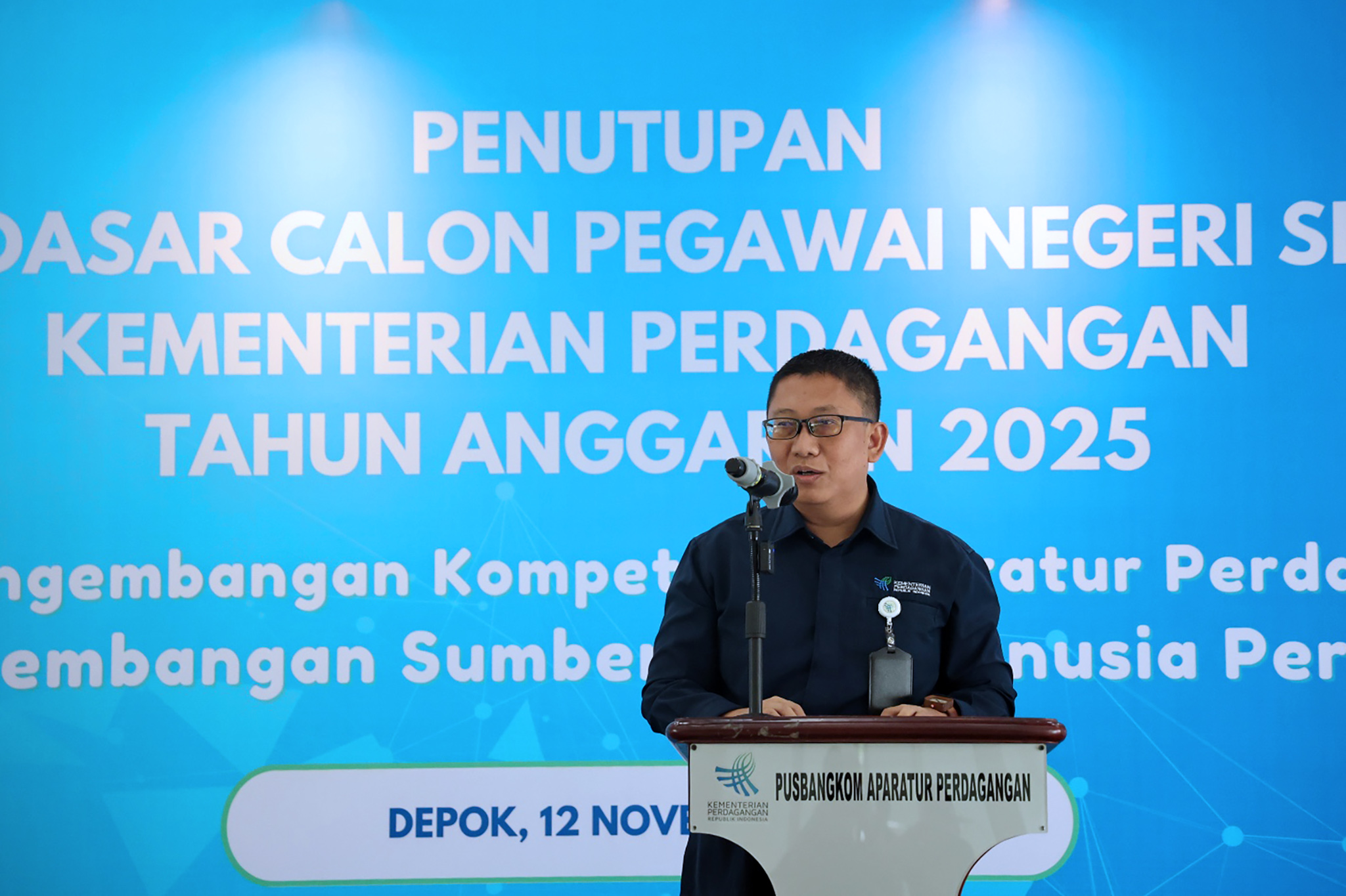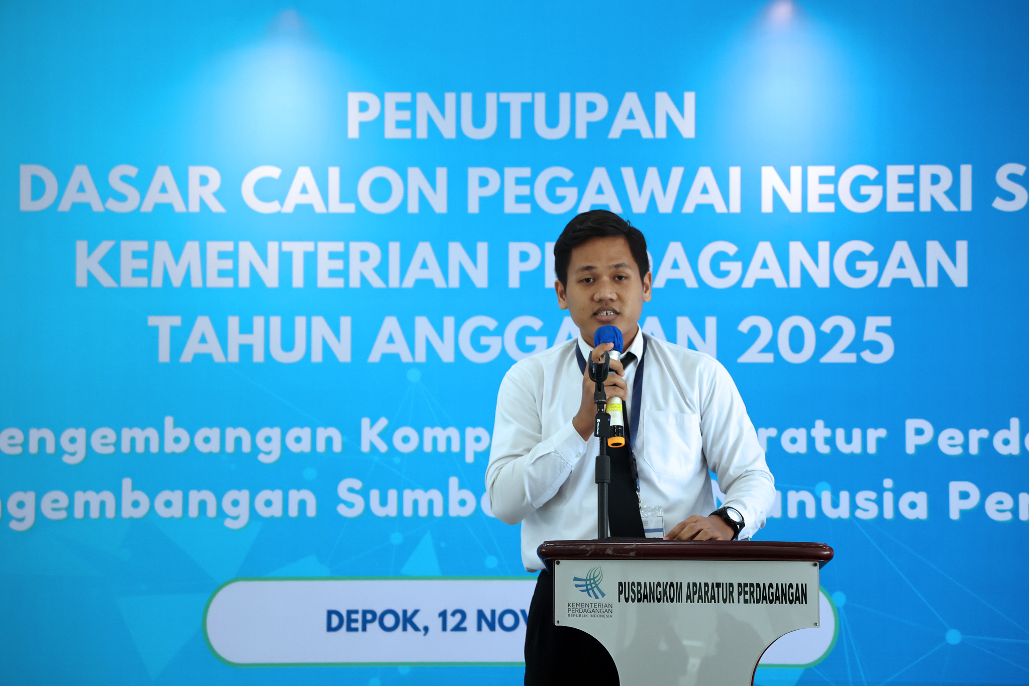 Pusat Pengembangan Kompetensi Aparatur Perdagangan (Pusbangkom AP) resmi menutup Pelatihan Dasar (Latsar) Calon Pegawai Negeri Sipil (CPNS) Tahun 2025 di Auditorium Pusbangkom AP, Depok, Jawa Barat, Rabu (12 Nov). Acara penutupan ini menandai berakhirnya masa pelatihan yang telah dilaksanakan sejak 14 Juli hingga 7 November 2025 dengan metode blended learning.