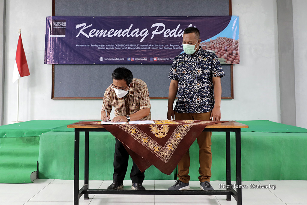 Kementerian Perdagangan kembali memberikan bantuan melalui Kemendag Peduli. Kali ini, bantuan berupa 5 ton telur ayam ras diberikan kepada masyarakat Desa Plumbon. Bantuan ini diserahkan oleh Direktur Barang Kebutuhan Pokok dan Barang Penting, Isy Karim dan diterima langsung oleh Kepala Desa Plumbon, Agus Mulyono di Balai Desa Plumbon, Kabupaten Kebumen, Jawa Tengah, Sabtu (16 Okt).