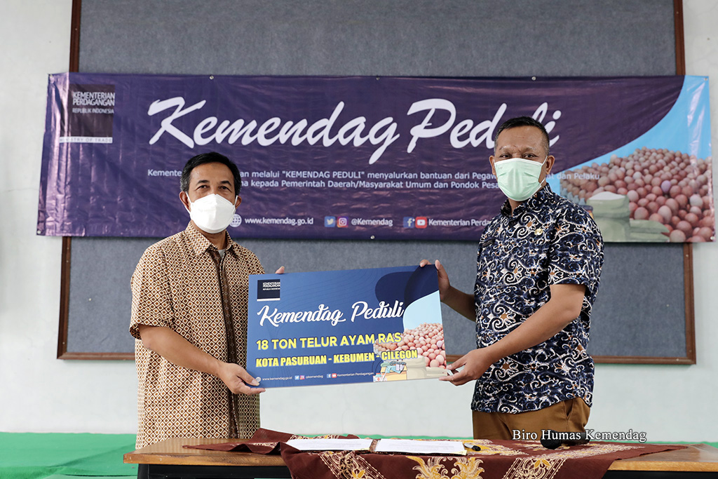 Pada waktu bersamaan, Kemendag Peduli menyalurkan sebanyak 18 ton telur ayam ras di 3 daerah, yaitu di Desa Plumbon, Kebumen sebanyak 5 ton; Kota Pasuruan sebanyak 5 ton; dan Kota Cilegon sebanyak 8 ton.