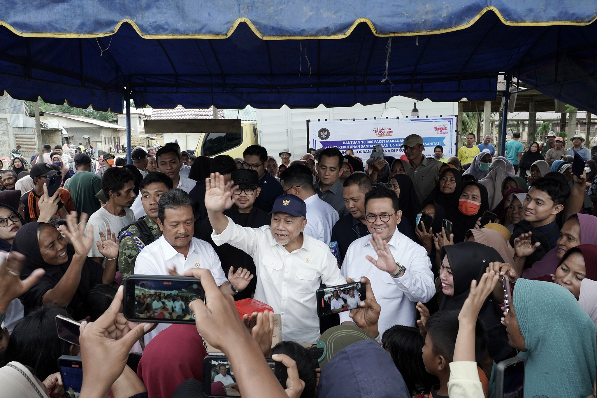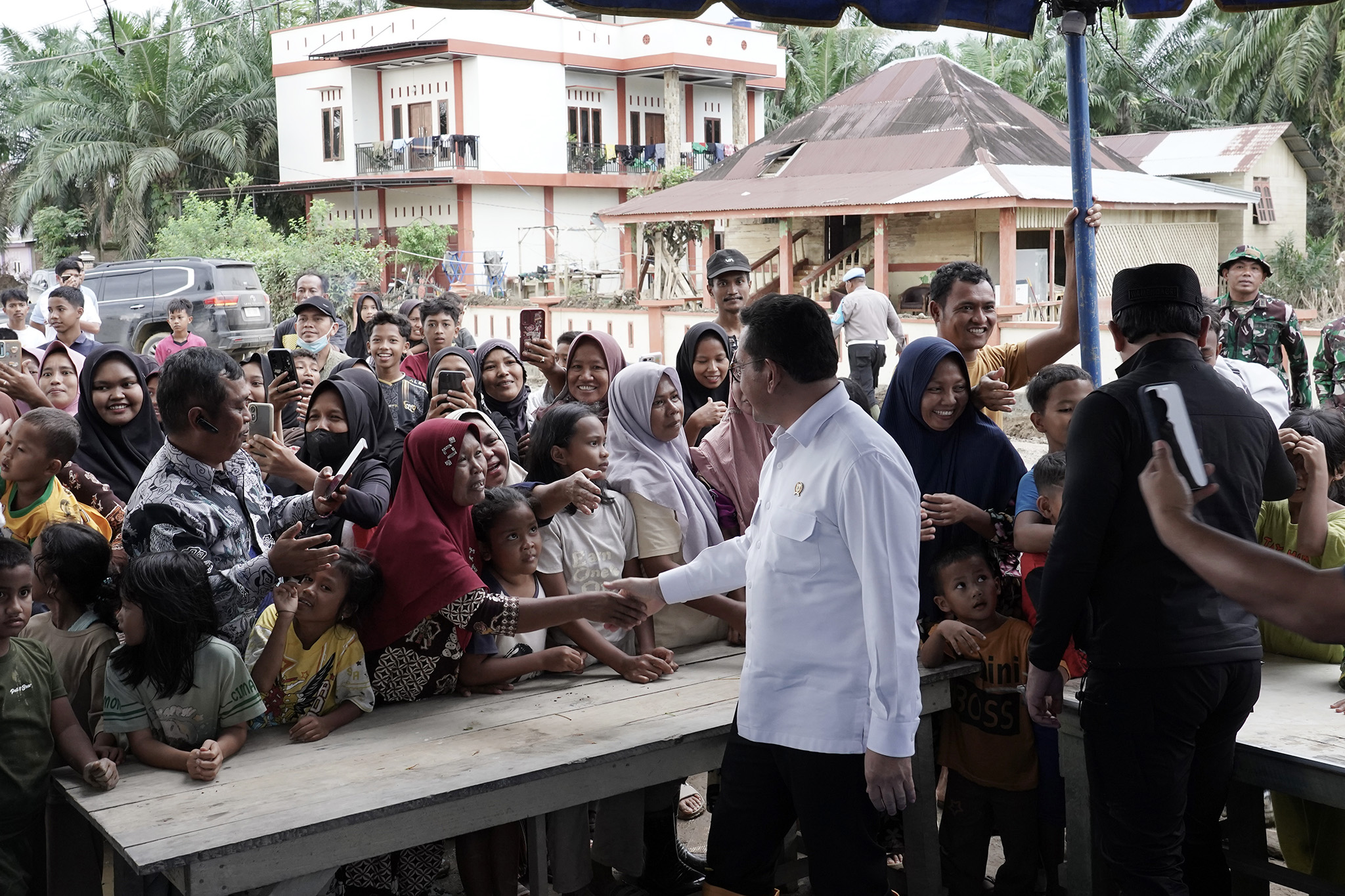 Menteri Perdagangan, Budi Santoso menyerahkan Bantuan Kemendag Peduli secara simbolis untuk korban terdampak bencana banjir di Aceh Utara, Langsa, dan Aceh Tamiang, yang berlangsung di Aceh, Jumat (9 Jan).