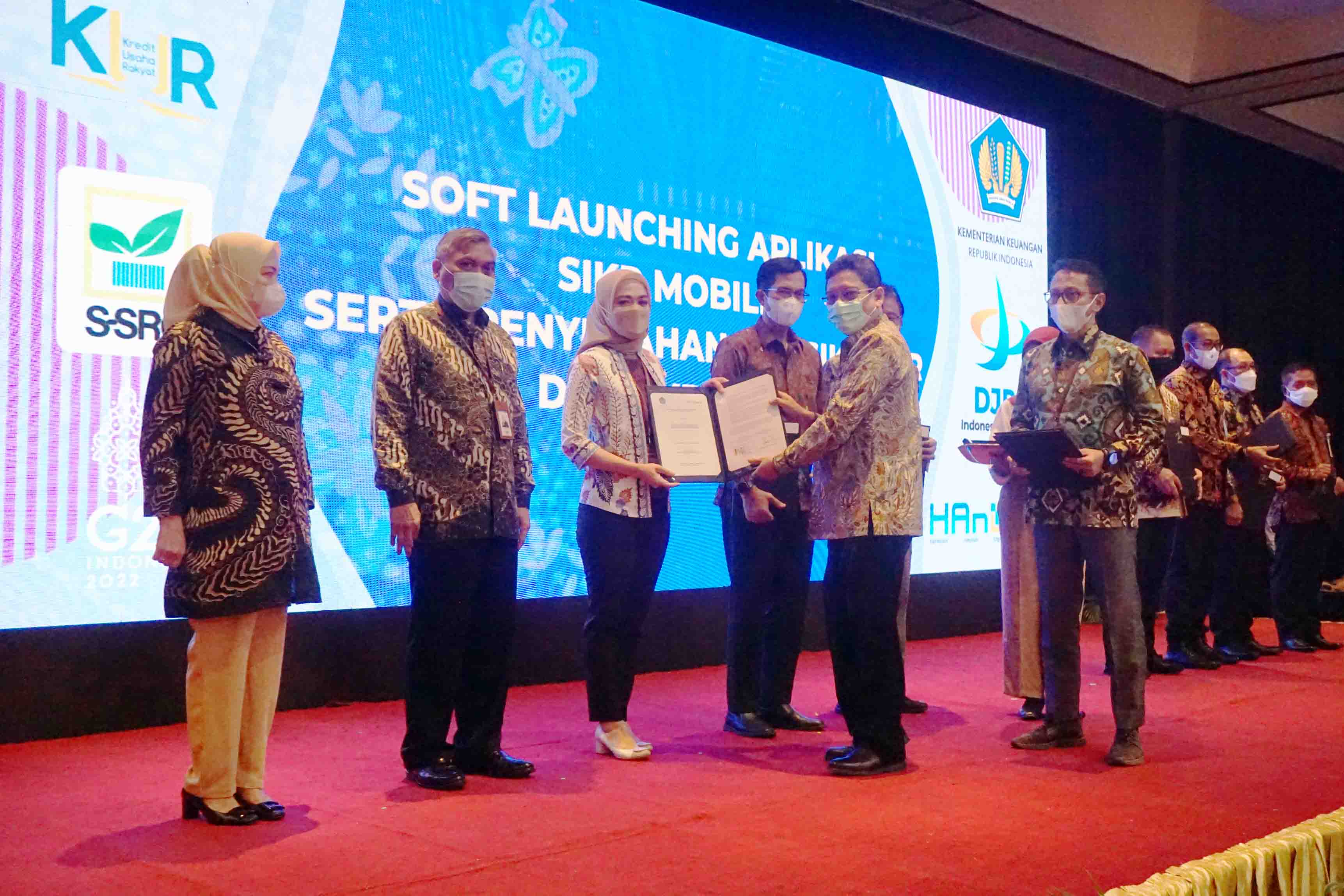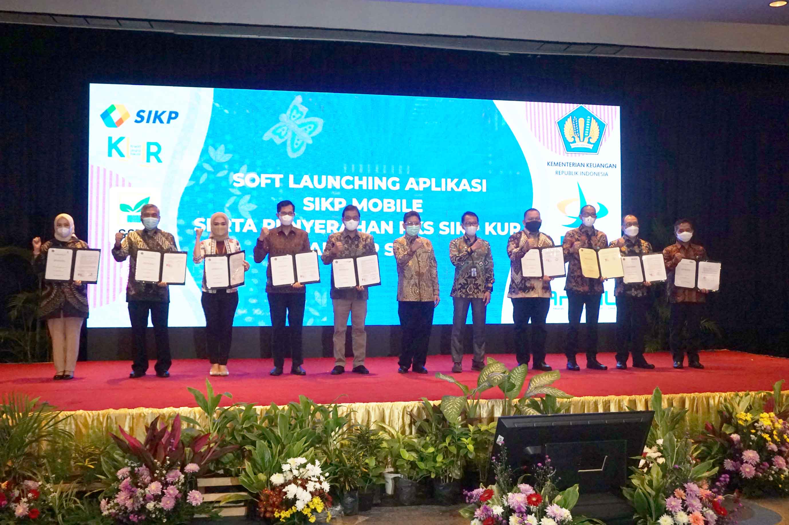 Plt. Kepala Badan Pengawas Perdagangan Berjangka Komoditi, Indrasari Wisnu Wardhana menyerahkan Perjanjian Kerja Sama Pembiayaan Skema Subsidi Resi Gudang (PKP SSRG) kepada bank penyalur, yaitu BRI, BNI, Bank Jateng, Bank Jatim, Bank BJB, Bank Kalsel, Bank Lampung, Bank Sumsel Babel, Bank Sulselbar) di Jakarta, Kamis (31 Mar). Acara ini merupakan rangkaian acara Penyerahan Perjanjian Kerja Sama Sistem Informasi Kredit Program Kredit Usaha Rakyat (PKS SIKP KUR) kepada Penyalur KUR dan Penjamin KUR serta Perjanjian Kerja Sama Pembiayaan Skema Subsidi Resi Gudang (PKP SSRG) kepada Penyalur SSRG, dan Soft Launching SIKP Mobile yang diselenggarakan oleh Kementerian Keuangan.