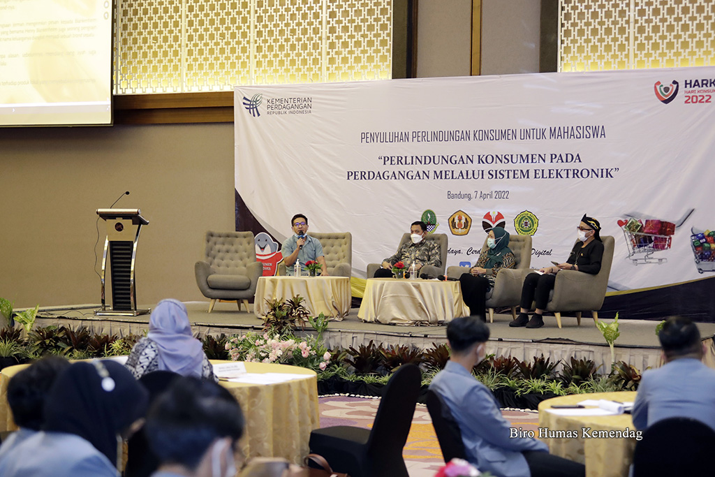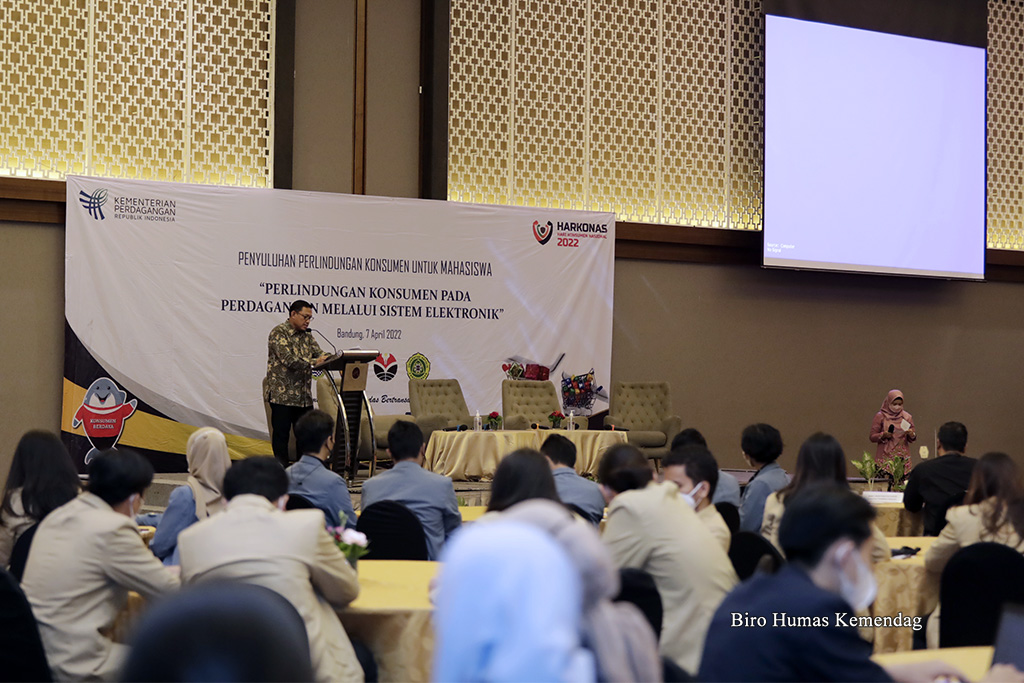 Kementerian Perdagangan menggelar acara Penyuluhan Perlindungan Konsumen untuk Mahasiswa di Kota Bandung, Jawa Barat, Kamis (7 April). Acara yang bertema “Perlindungan Konsumen pada Perdagangan Melalui Sistem Elektronik” ini dibuka oleh Direktur Pemberdayaan Konsumen, Ivan Fithriyanto.