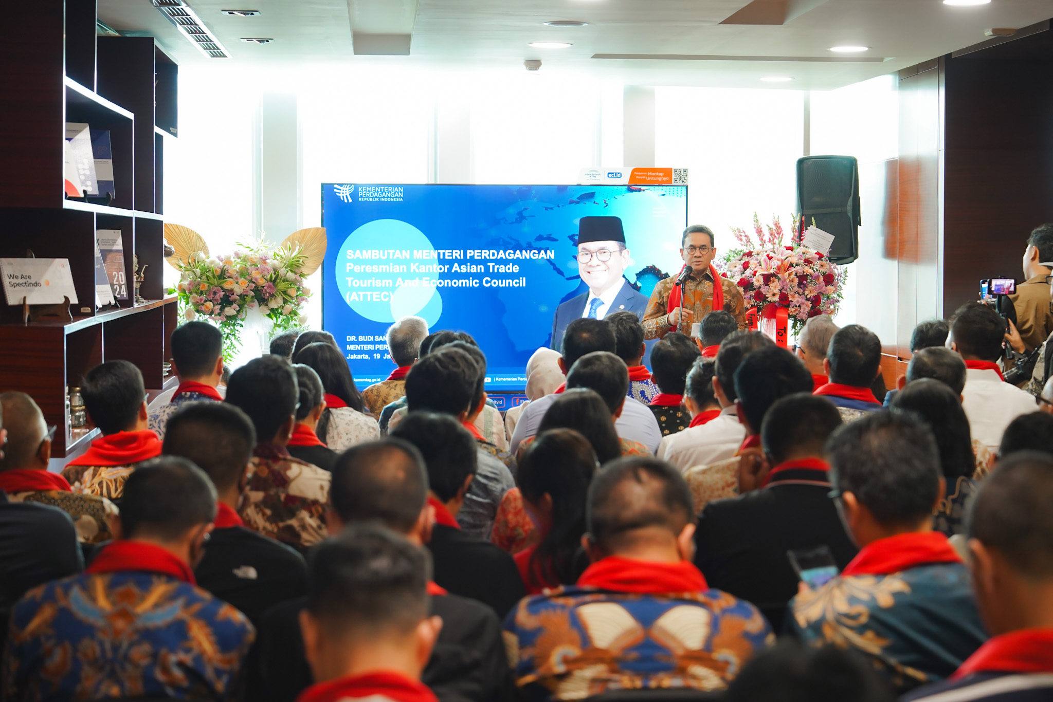 Menteri Perdagangan, Budi Santoso meresmikan Kantor Pusat Asian Trade, Tourism, and Economics Council (ATTEC) di Jakarta, Senin (19 Jan).