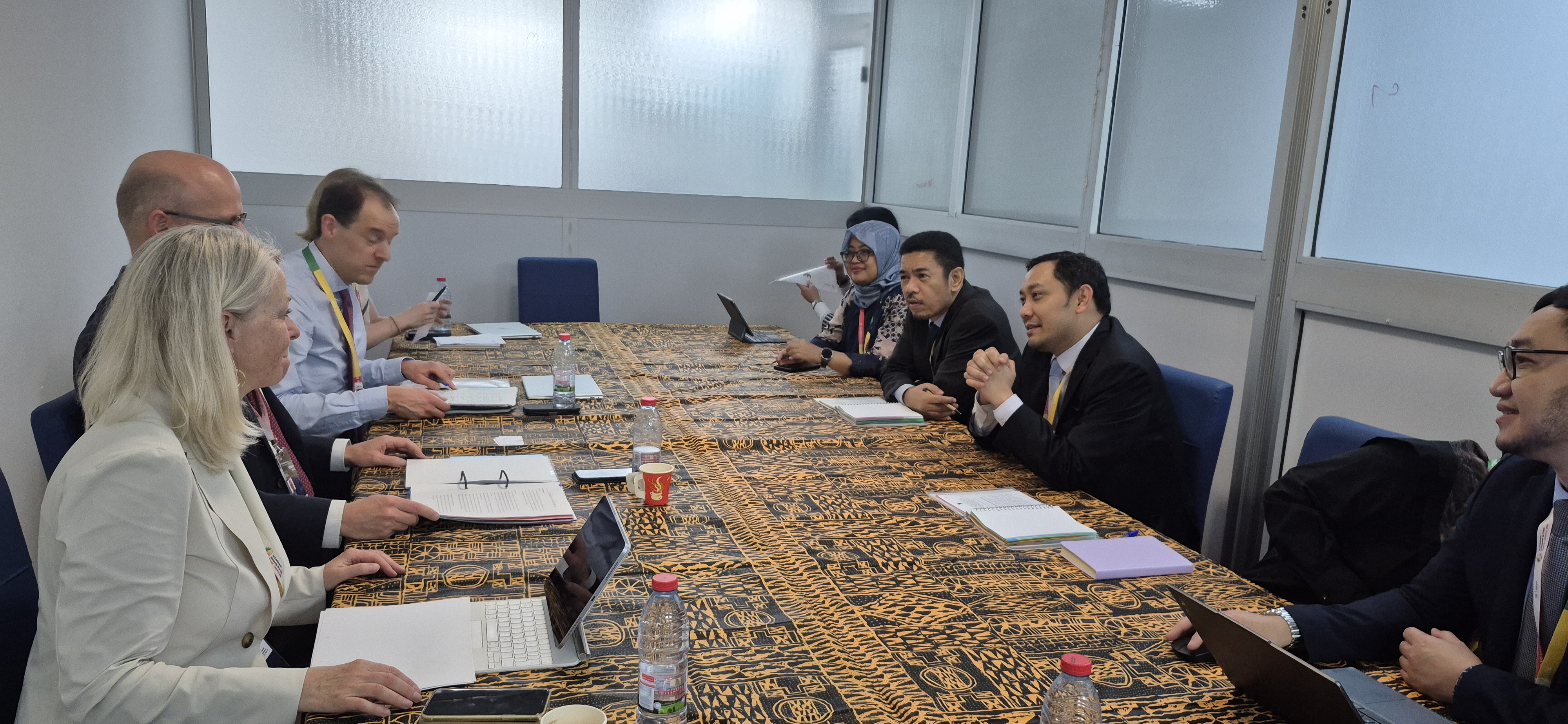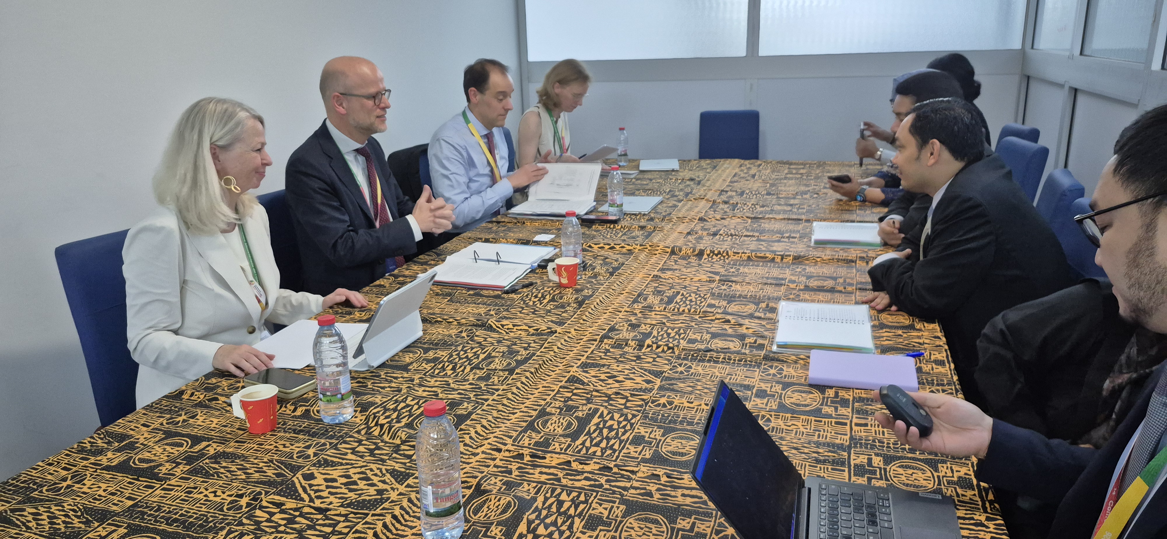 Staf Ahli Menteri Perdagangan RI Bidang Hubungan Internasional, Johni Martha memimpin Delegasi Indonesia dalam pertemuan bilateral dengan Delegasi Swedia pada rangkaian Konferensi Tingkat Menteri (KTM) ke-14 WTO di Yaoundé, Kamerun, Jumat (27 Mar).