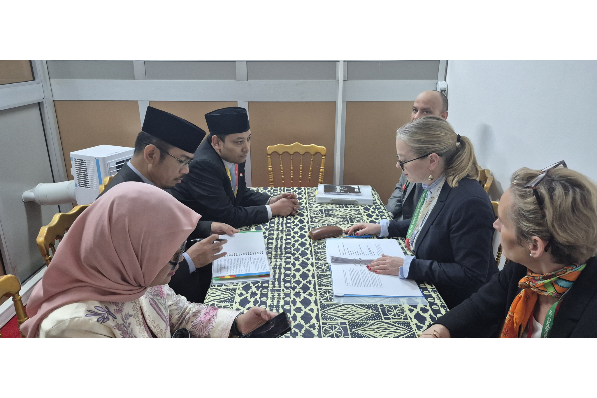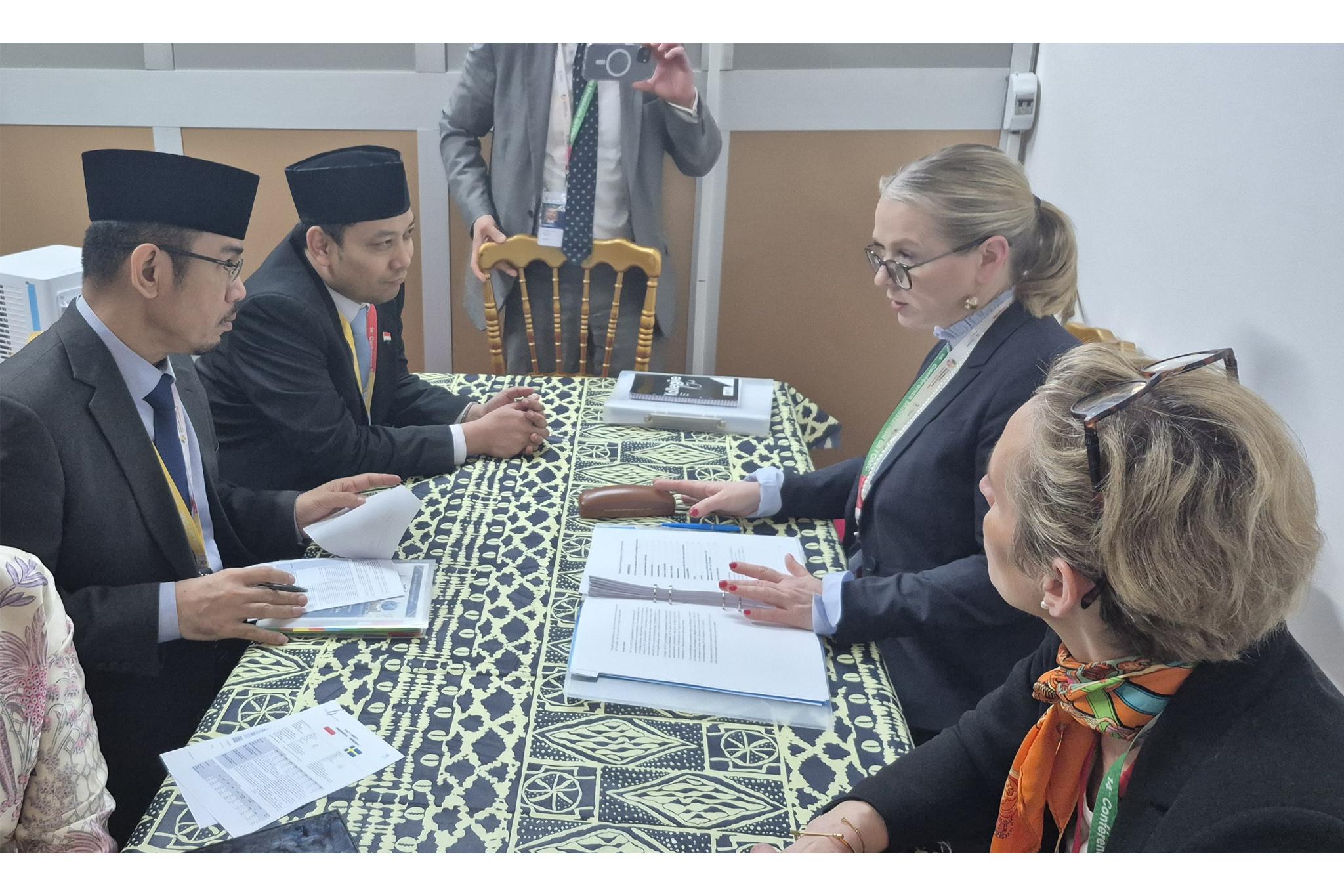 Delegasi Indonesia melakukan pertemuan bilateral dengan Delegasi Swedia pada rangkaian Konferensi Tingkat Menteri (KTM) ke-14 WTO di Yaoundé, Kamerun, Kamis (26 Mar).