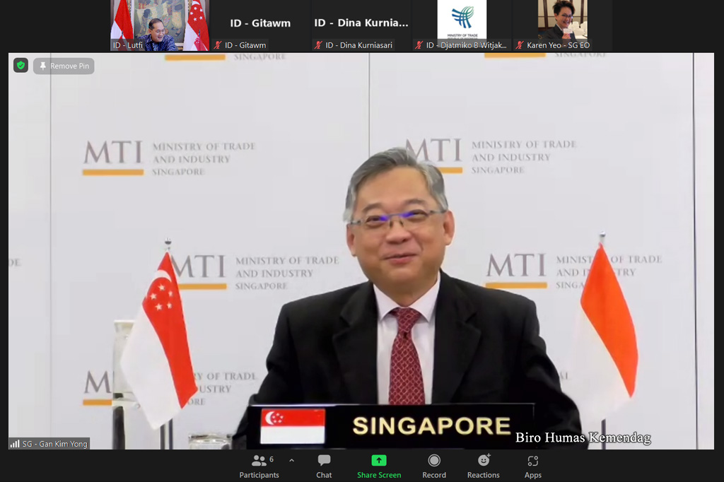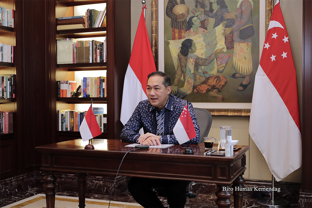 Menteri Perdagangan RI, Muhammad Lutfi melakukan pertemuan bilateral dengan Menteri Perdagangan dan Industri Singapura, Gan Kim Yong secara virtual, Rabu (16 Mar).