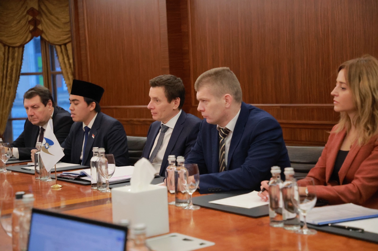 Pertemuan tersebut membahas mengenai peningkatan perdagangan bilateral antara Indonesia dengan Persatuan Ekonomi Eurasia (Eurasian Economic Union/EAEU).