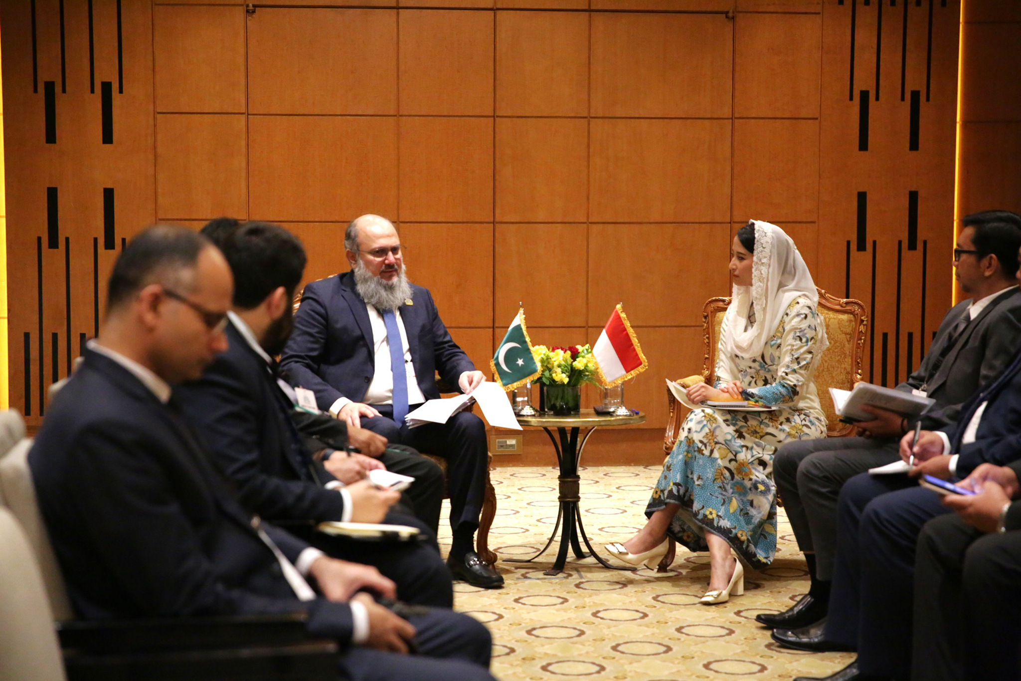Wakil Menteri Perdagangan RI, Dyah Roro Esti melakukan pertemuan bilateral dengan Menteri Perdagangan Pakistan, Jam Kamal Khan di Kairo, Mesir, Selasa (2 Nov). Pertemuan ini berlangsung di sela-sela rangkaian The 4th Meeting of the D-8 Trade Ministers Council di Kairo, 1—2 Desember 2025.