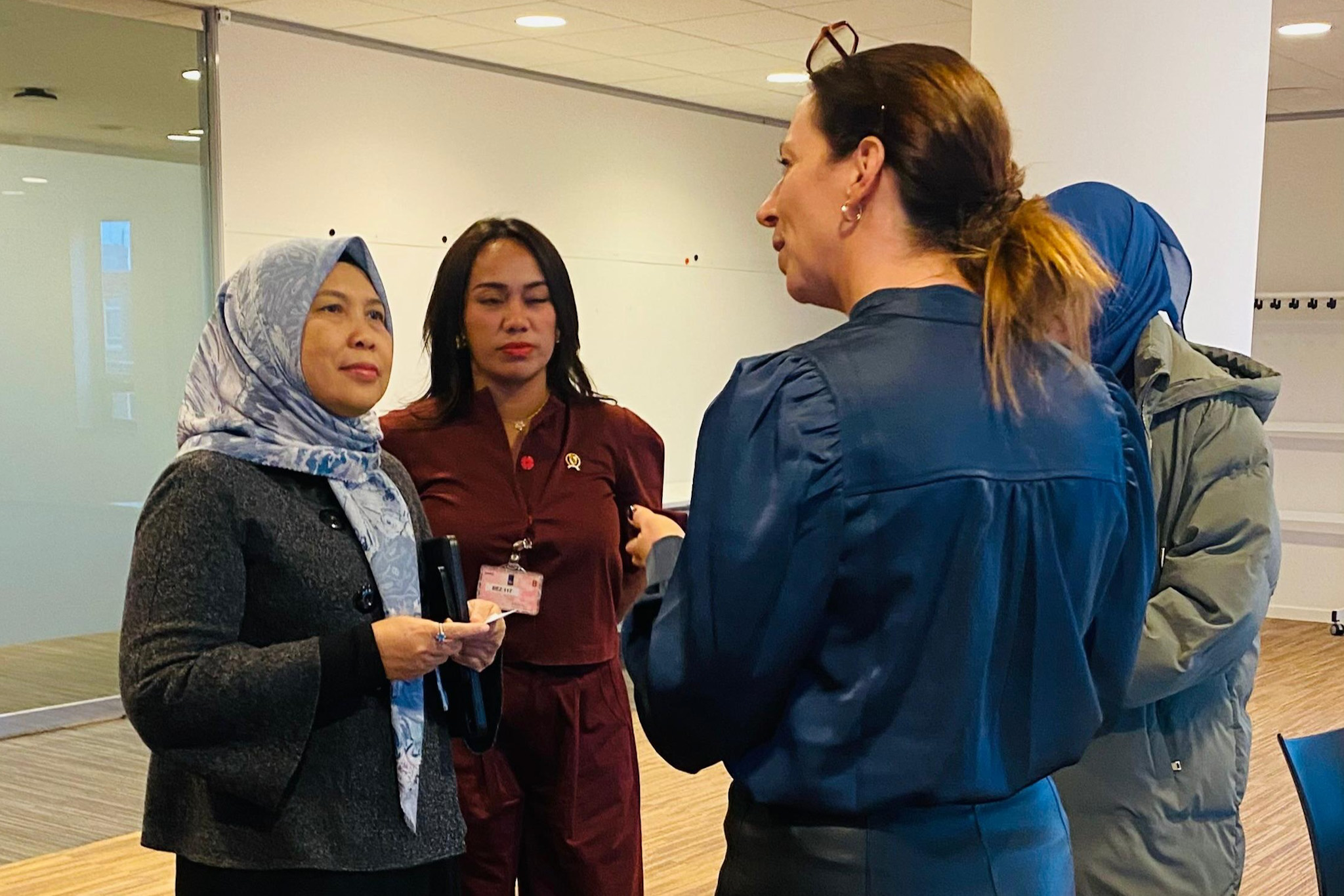 Direktur Jenderal Pengembangan Ekspor Nasional, Fajarini Puntodewi melakukan pertemuan dengan Managing Director Netherlands Enterprise Agency (RVO), Annemieke Broesterhouizen di Den Haag, Belanda, Jumat (31 Okt).